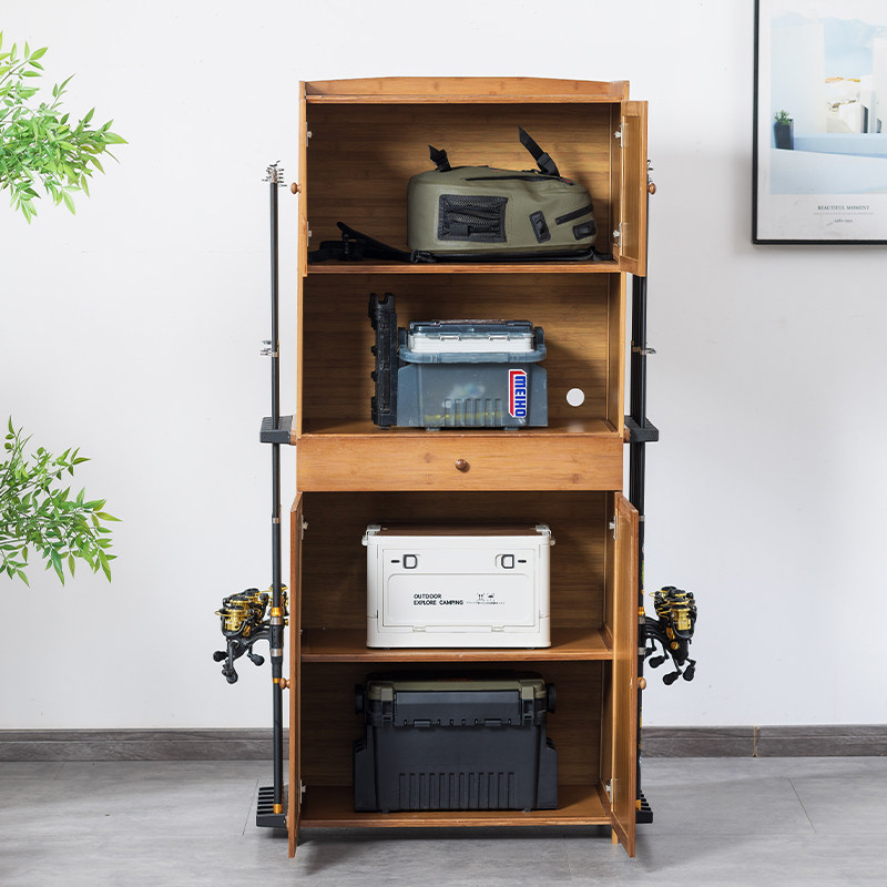 📚 竹多功能鱼竿架展示架摆放架家用鱼竿收纳柜路亚竿手竿渔具收纳架
