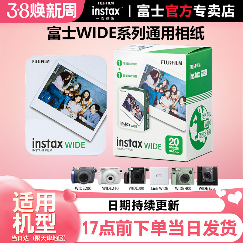 📚 富士一次成像拍立得相纸5寸宽幅白边相纸wide400/210/300/200拍立得黑白 汉白玉宽幅相纸