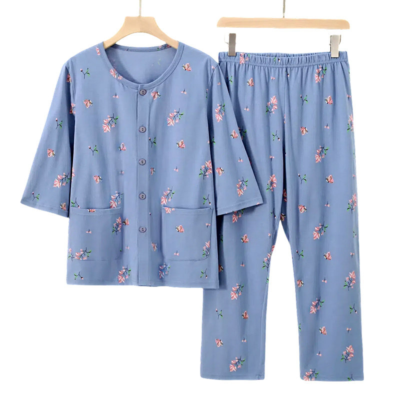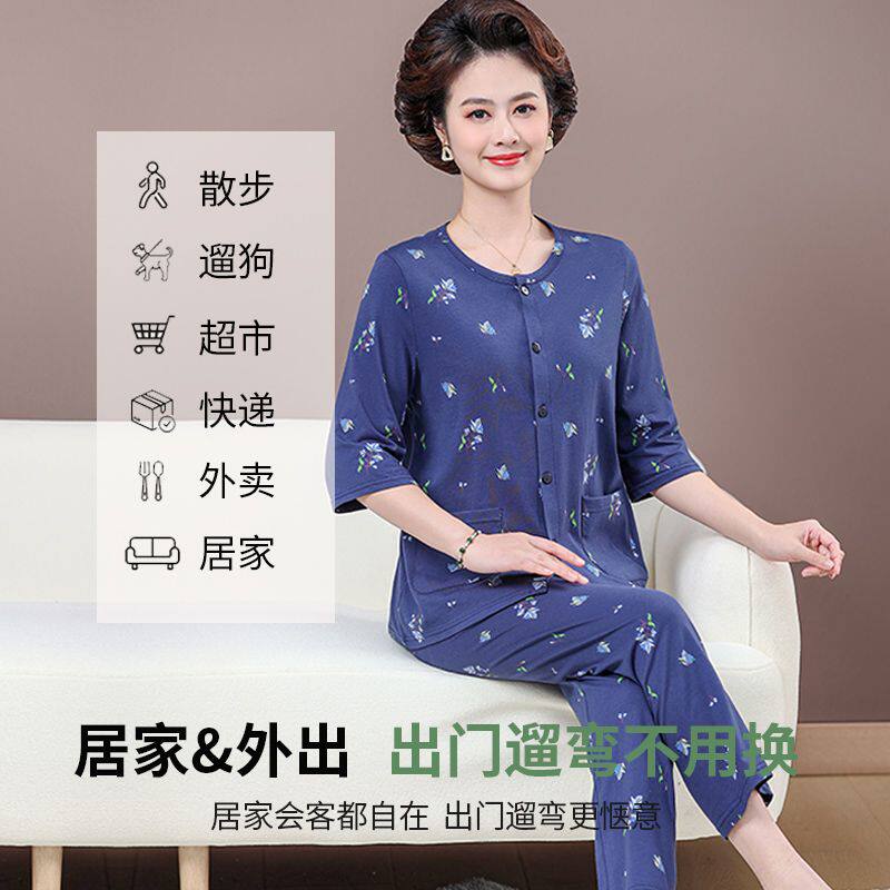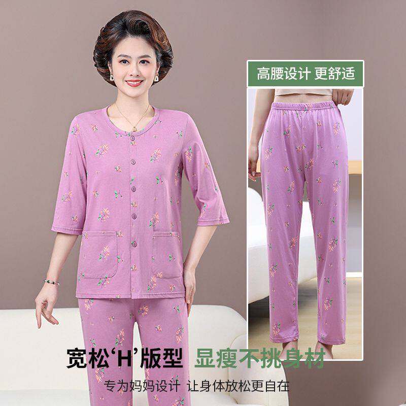 📚 雅鹿中老年妈妈睡衣女纯棉夏季短袖长裤薄款开衫可外穿家居服套装