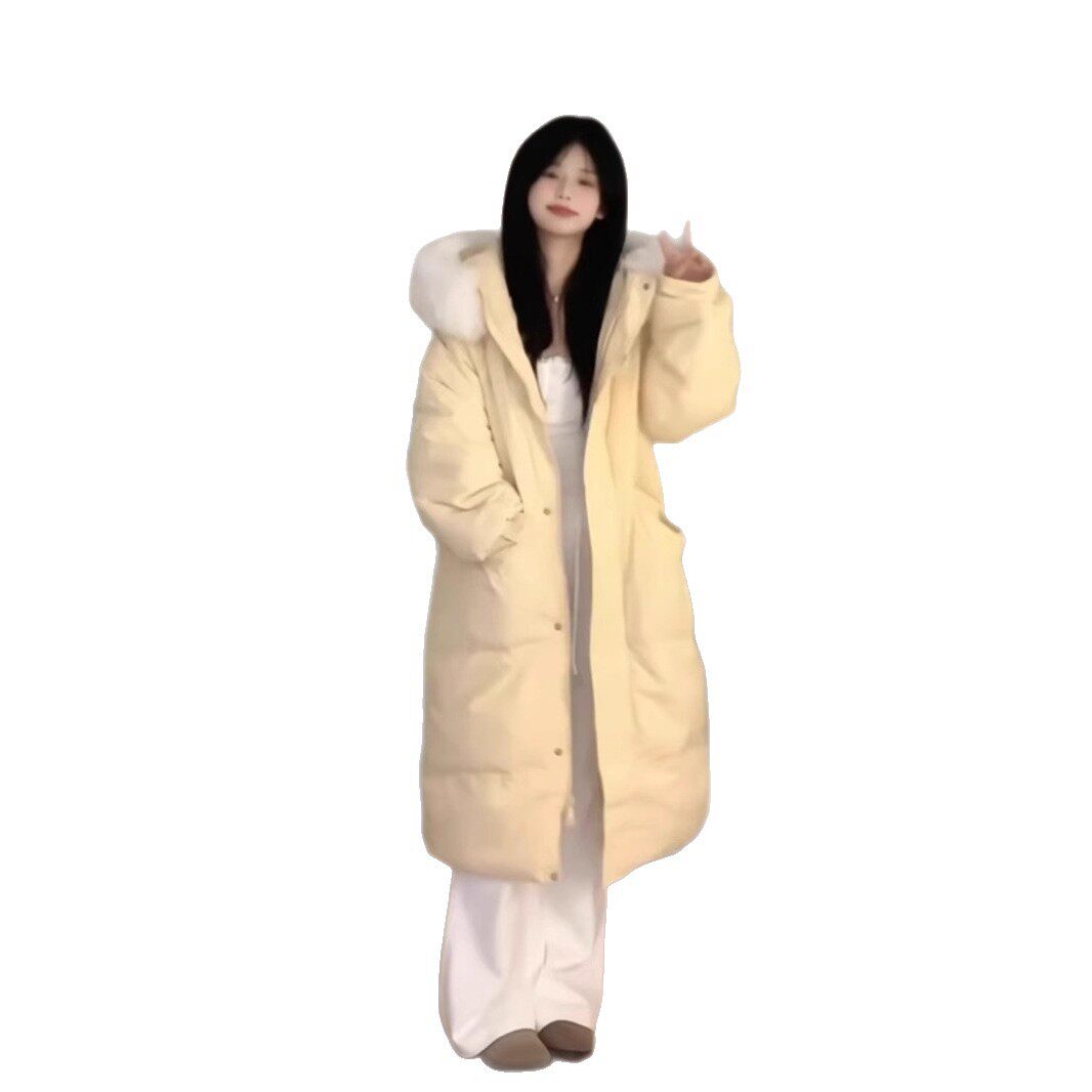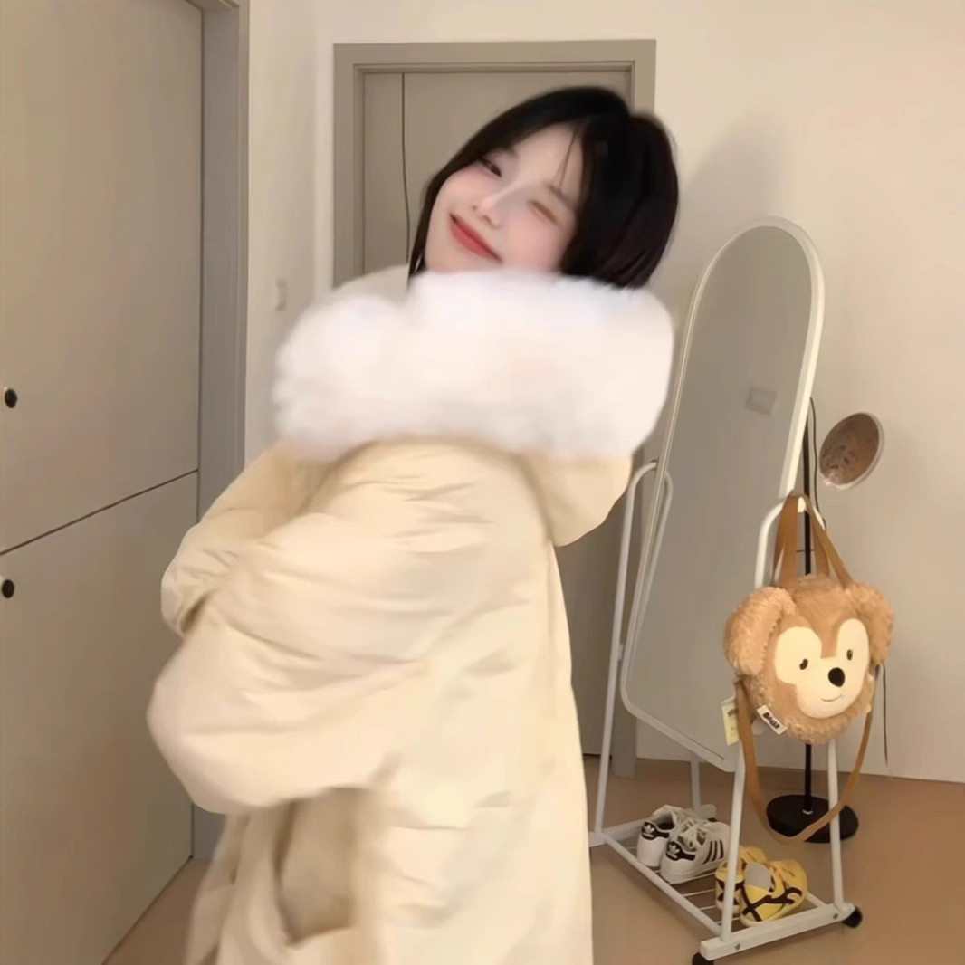 📚 大码奶呼呼黄色中长款毛领羽绒棉服女冬季新款加厚连帽面包服外套