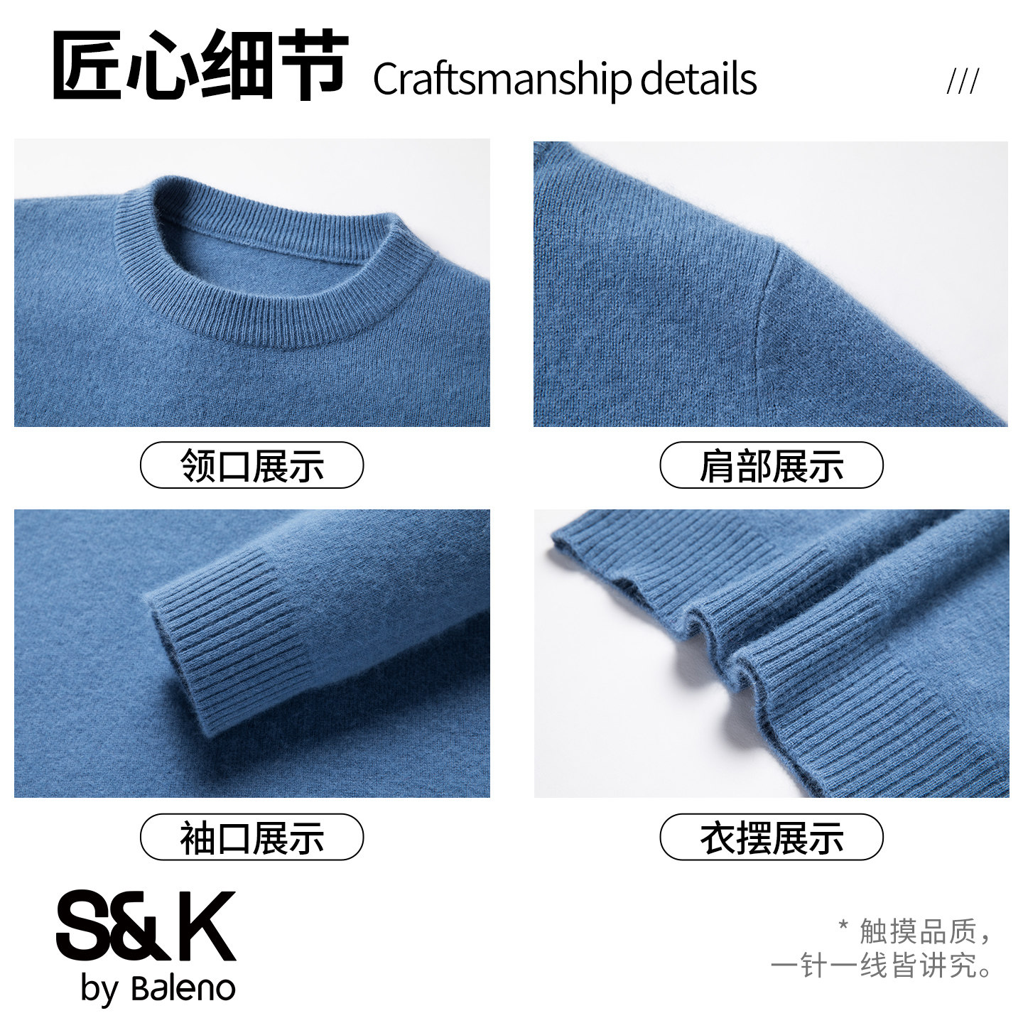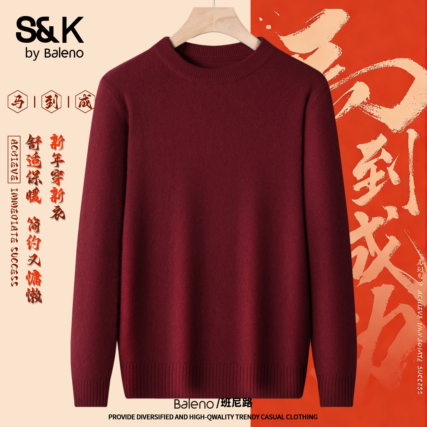 📚 班尼路SK男士秋冬季红色圆领针织衫百搭加厚过年新衣服打底毛衣YS