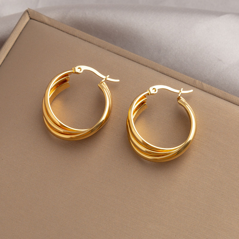 📚 不掉色防过敏钛钢耳环女小众设计高级感百搭耳饰爆款轻奢耳圈耳扣