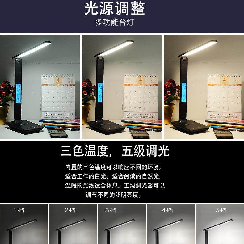 📚 可蓄电务折叠23271闹钟时显示间习阅读商办公可调光学护眼台灯定