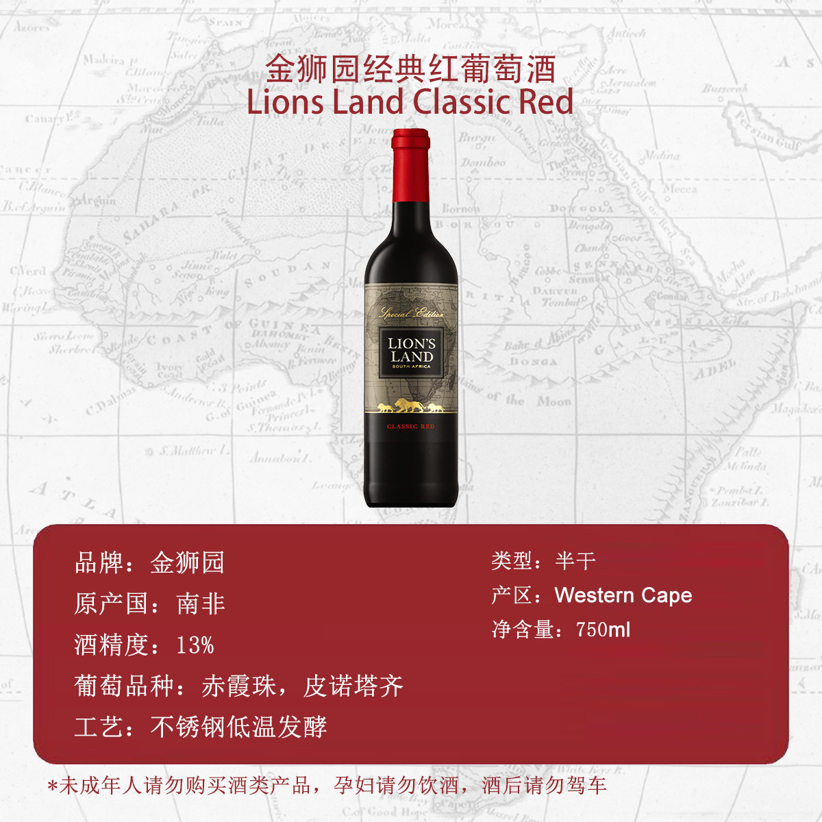 📚 南非首富酒庄 金狮园干红 原瓶原装进口奢侈品匠心精酿 750ml*6瓶