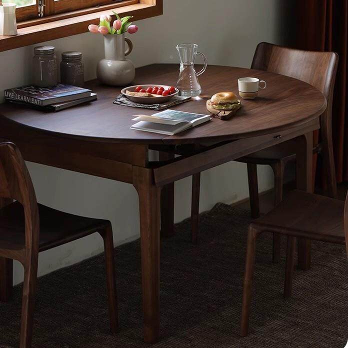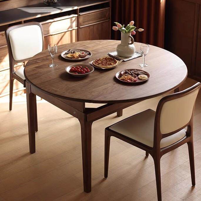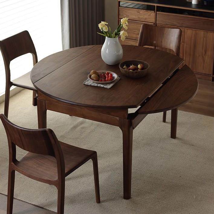 📚 北圆美黑桃木Z21折叠圆餐桌全实木饭小户桌型方两用胡伸缩多功能