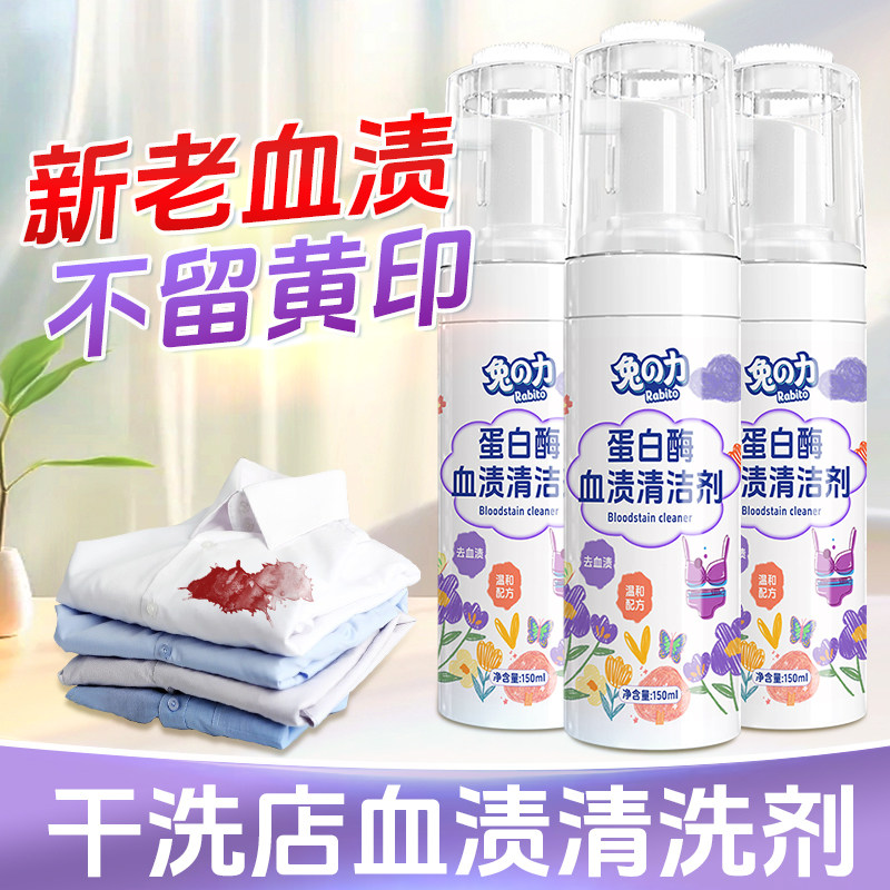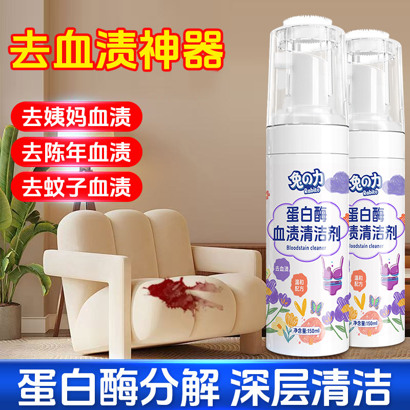📚 兔力去血渍大姨妈血迹专用清洗剂床垫床单蛋白酶洗月经污渍清洁剂