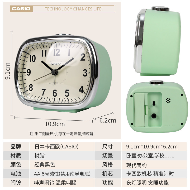 📚 卡西欧CASIO卧室闹表夜灯静音复古简约学生床头闹钟大声起床
