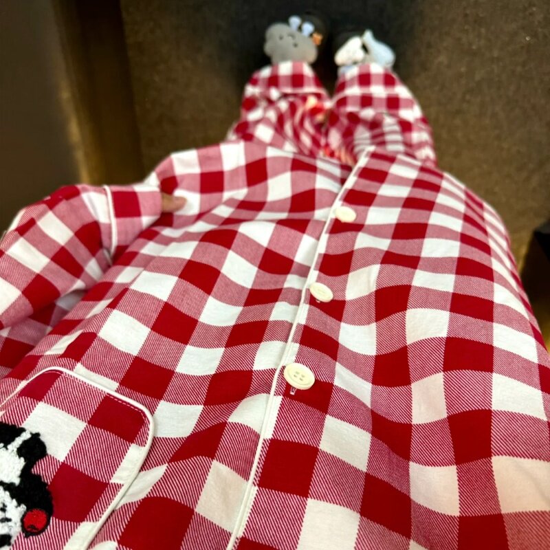 📚 侘町2024新款熊猫红格子纯棉长袖睡衣女大红本命年红色家居服秋款