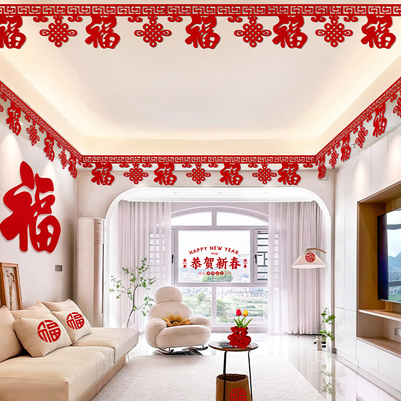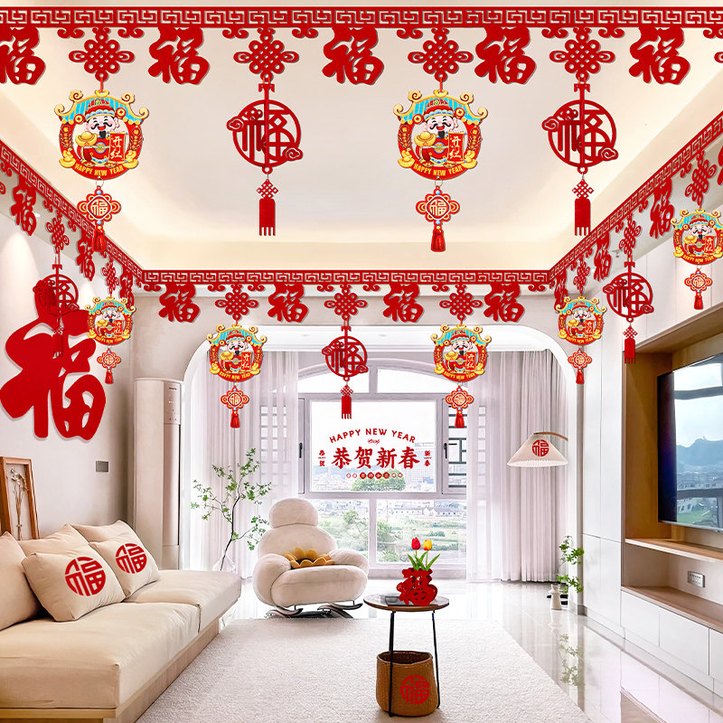 📚 2026马年春节室内布置新款福字拉花元旦灯笼装饰商场客厅挂饰用品