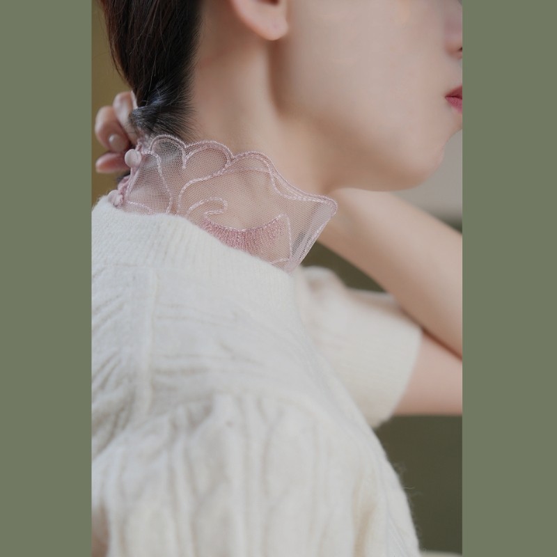 📚 随想铺原创~自带柔焦高级灰粉色睫毛刺绣唯美网纱高领内搭假领子