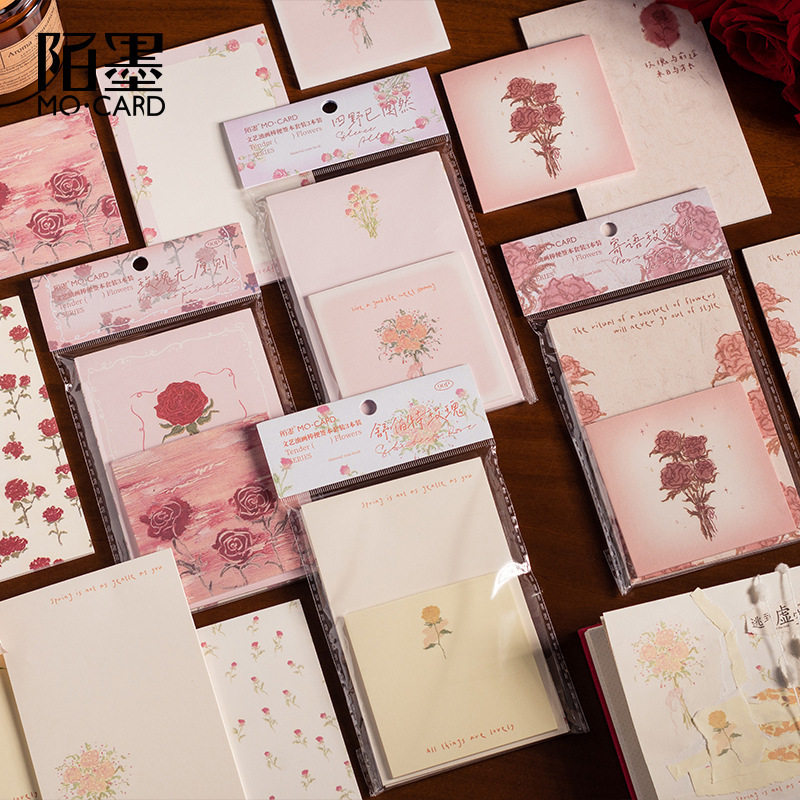 📚 陌墨便签本套装 温柔花事了系列 创意手帐留言记事装饰打底纸90张