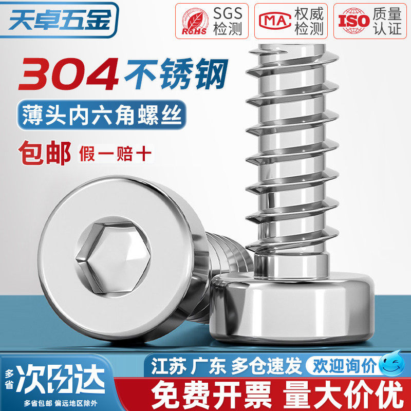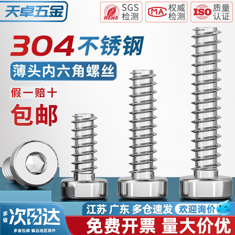 📚 304不锈钢薄头圆柱头内六角平尾自攻螺丝HB薄杯头螺钉MM2M3M4M5M6