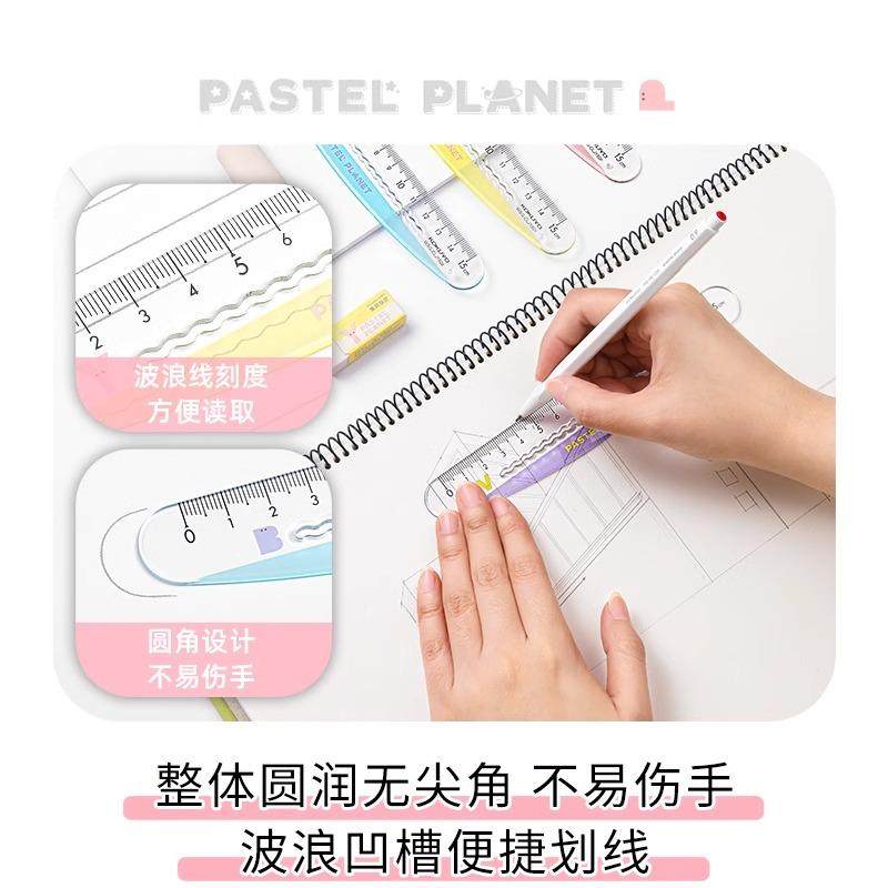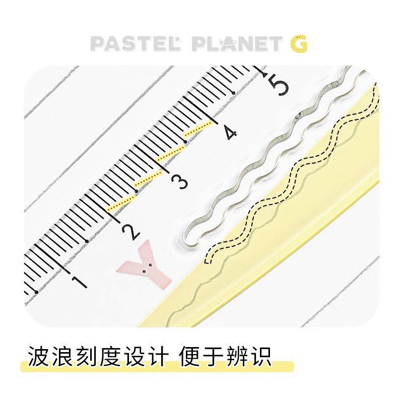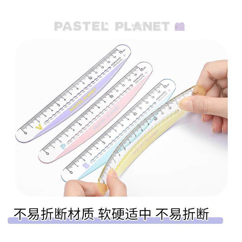 📚 国誉kokuyo淡彩星球波浪尺小学生用创意弯弯尺15cm不伤手直尺儿童便携划线刻度尺中学生波浪线文具透明尺子