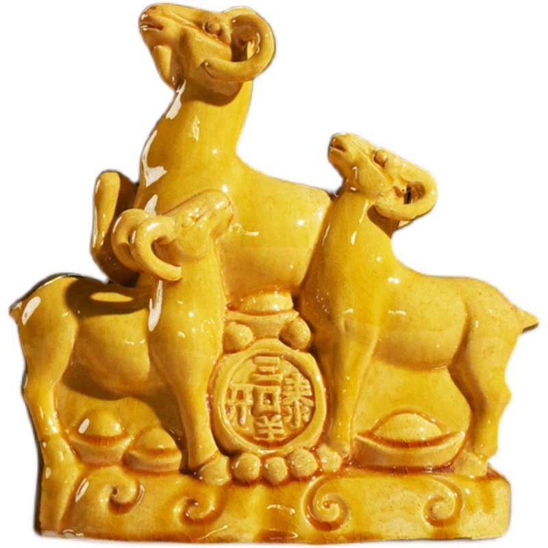 📚 三羊开泰黄色羊摆件唐三彩陶瓷礼品客厅电视柜生肖羊招财羊摆设
