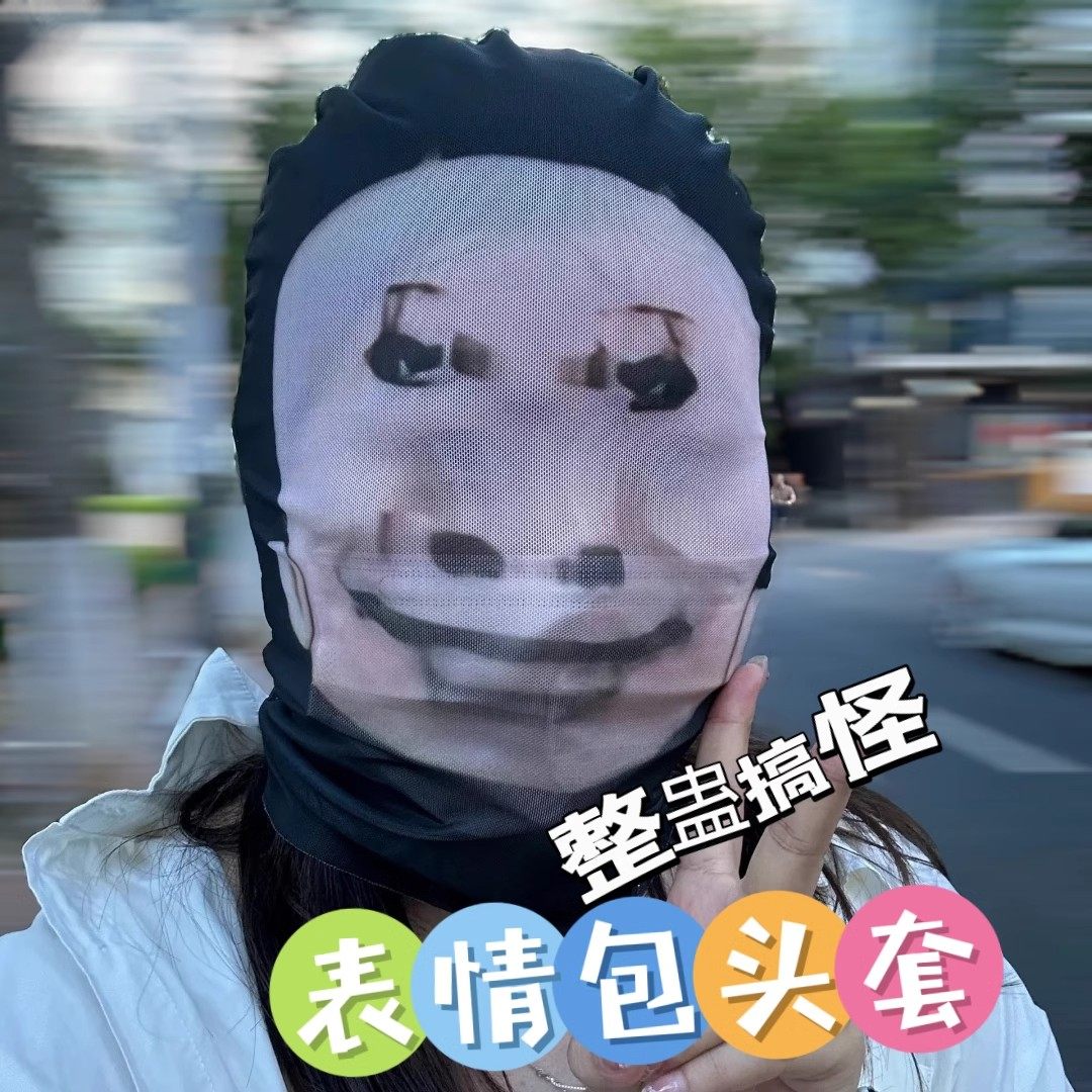 📚 夏季户外防晒面罩搞怪龙图搞笑表情包头套整蛊cos摩托车骑行全脸