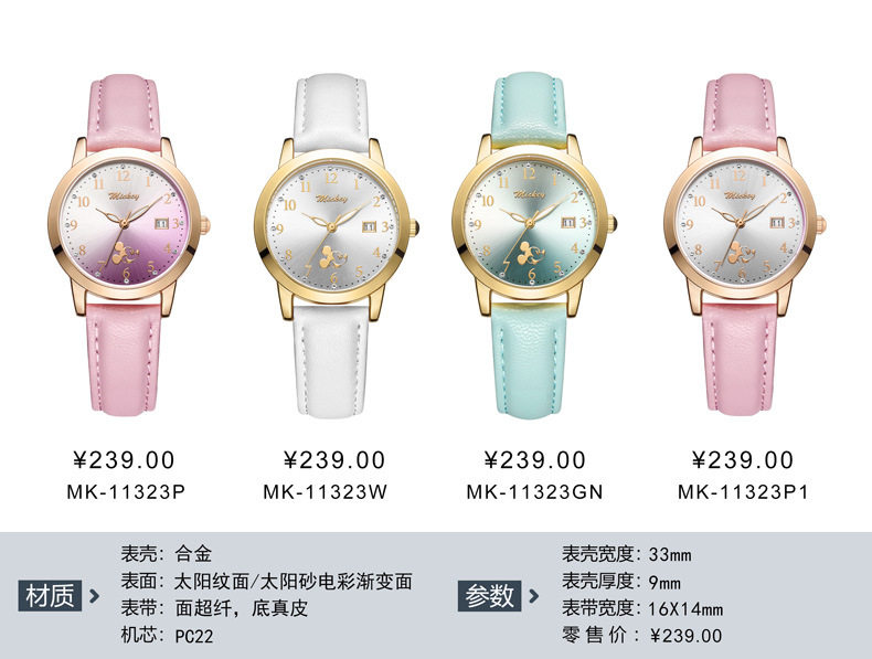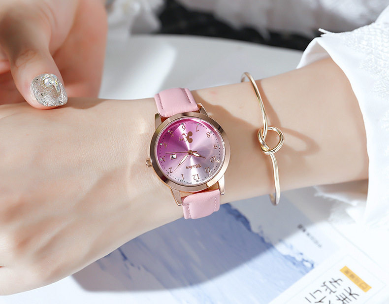 📚 迪士尼学生手表米奇防水女孩石英表日历男女表儿童手表指针式卡通