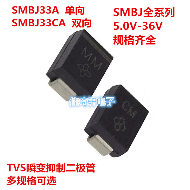 📚 TVS瞬态二极管SMBJ33CA/5.0/6.0/6.8/12/18/20/24/33A单向双向