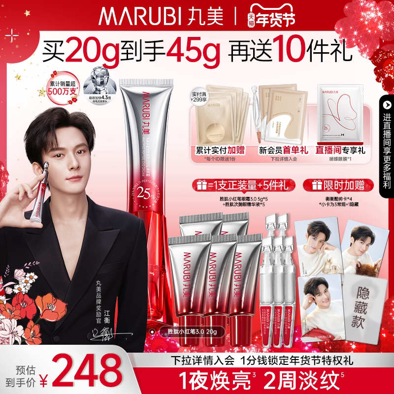📚 丸美小红笔眼霜抗皱淡细纹多重胜肽去熬夜黑眼圈提拉紧致带按摩头