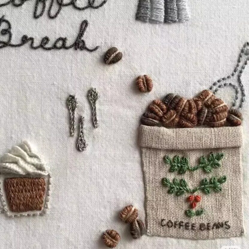 📚 小美好JOYSTITCH刺绣作品咖啡刺绣小资调性材料包可衣服帆布包