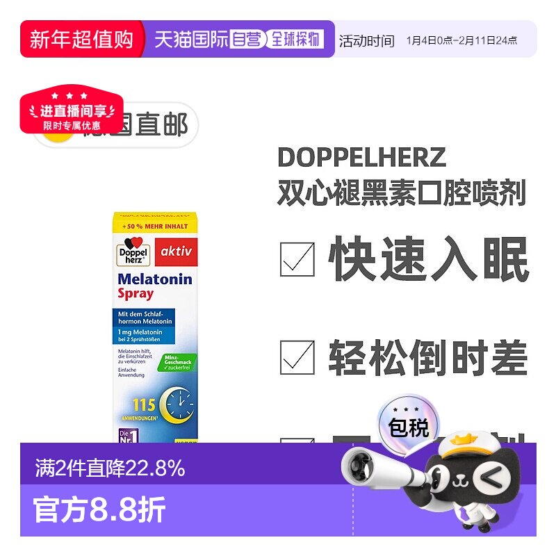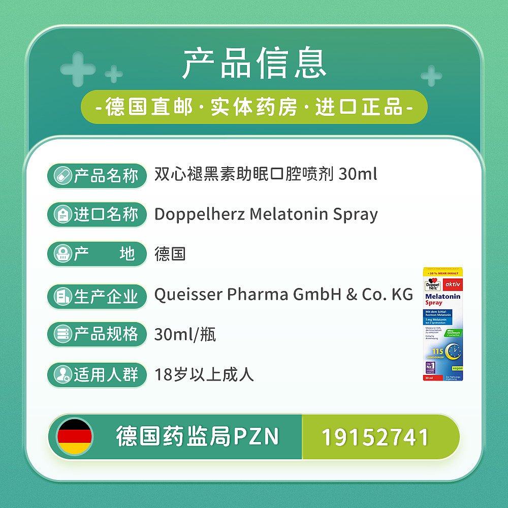 📚 德国双心Doppelherz褪黑素口腔喷剂30ml薄荷味助眠安睡