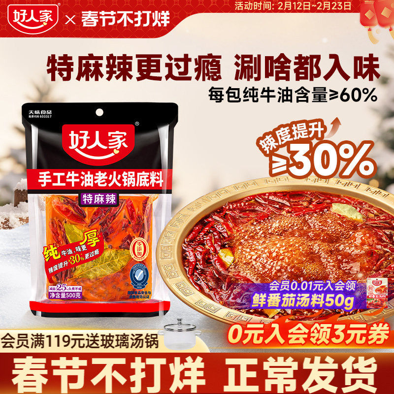 📚 好人家特麻辣牛油火锅料底料500g减盐四川重庆麻辣烫冒菜餐饮商用