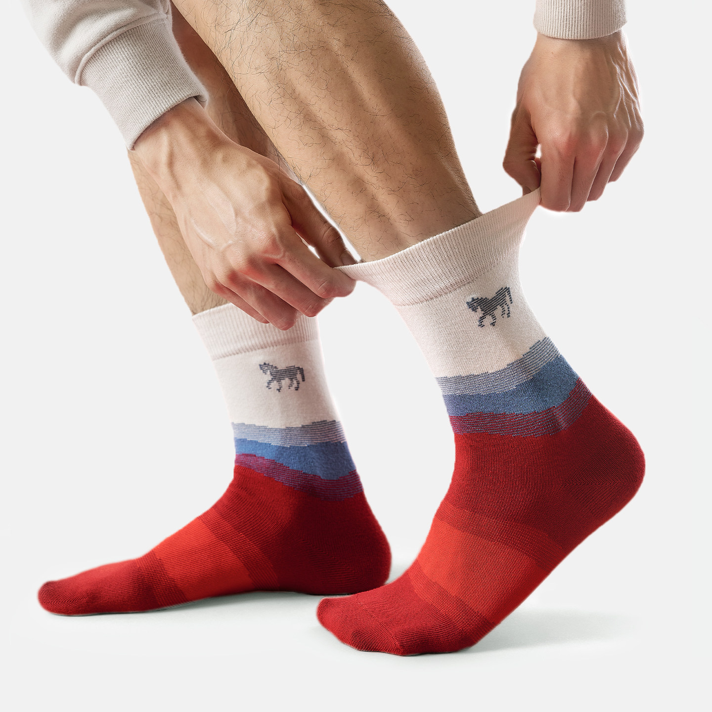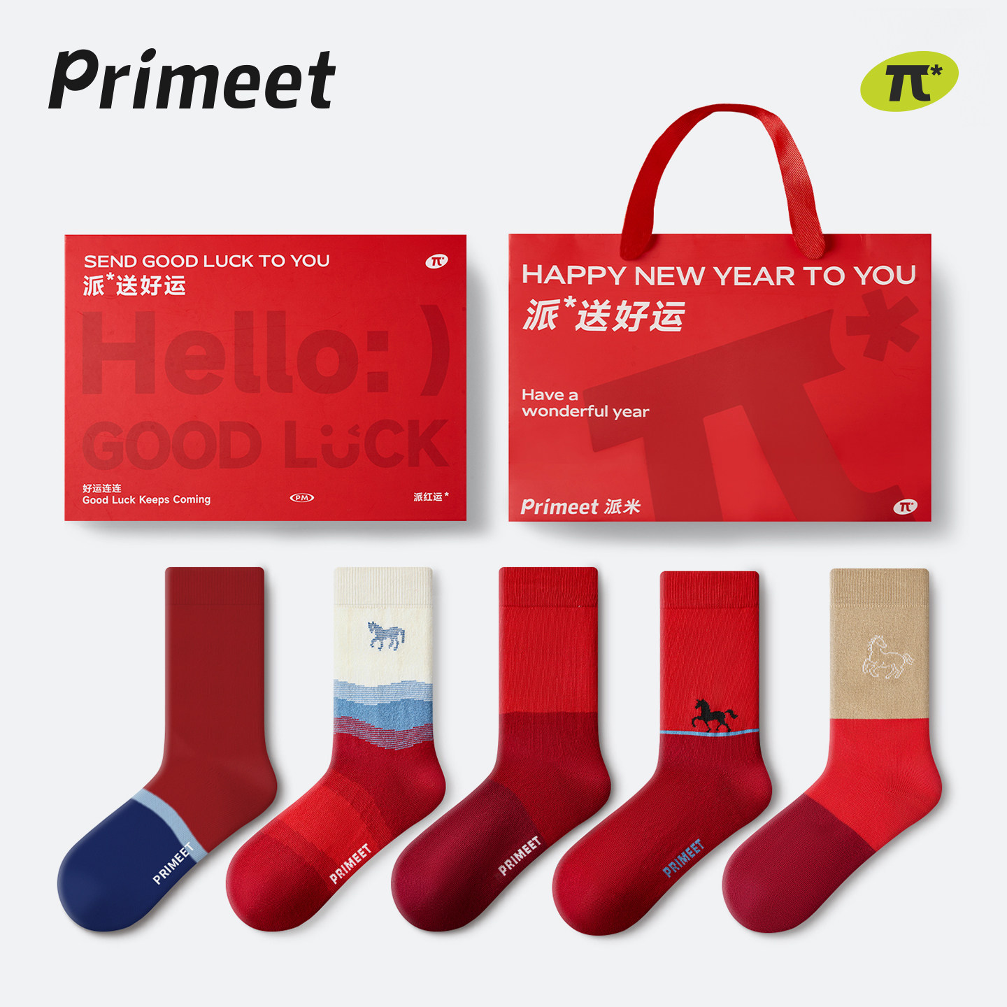 📚 派米本命年红色袜子男士马年中筒袜新年秋冬棉袜礼盒装礼物长筒袜
