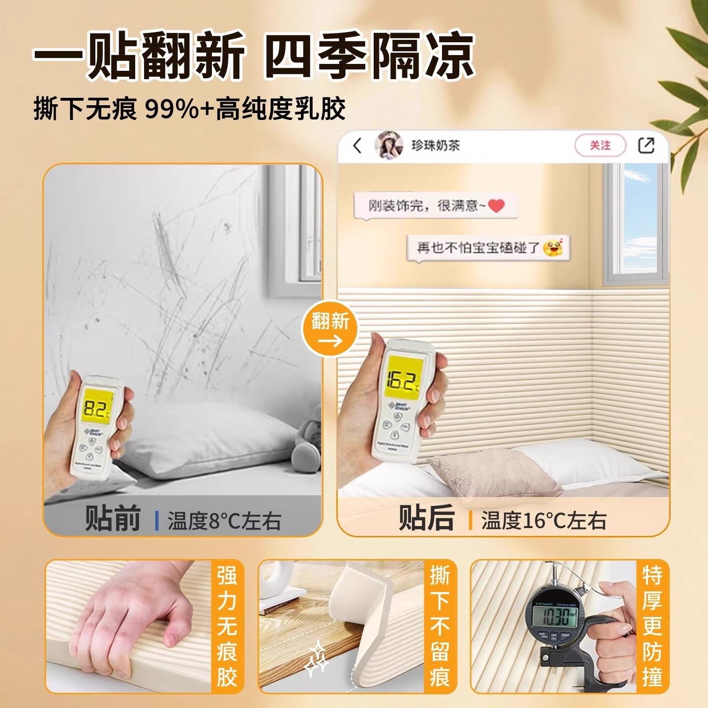 📚 榻榻米软包墙围炕床隔凉保温防寒墙贴儿童房墙壁面防撞床边墙围贴