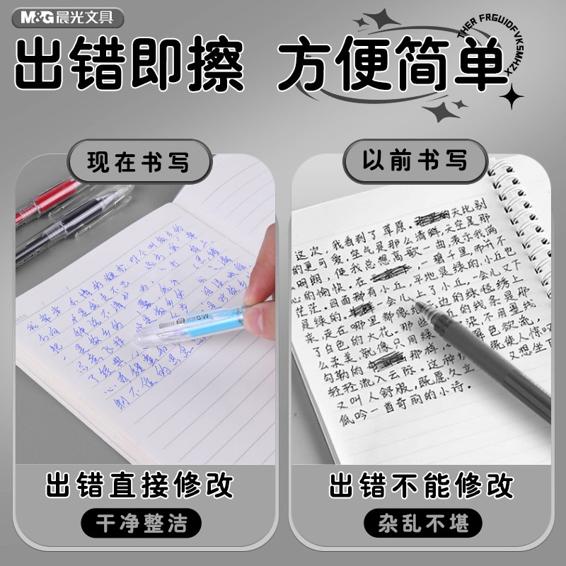 📚 晨光热可擦中性笔小学生专用三年级摩易可擦写0.5mm黑色蓝色笔芯替芯晶蓝墨蓝儿童可擦橡皮学习用品正品文具