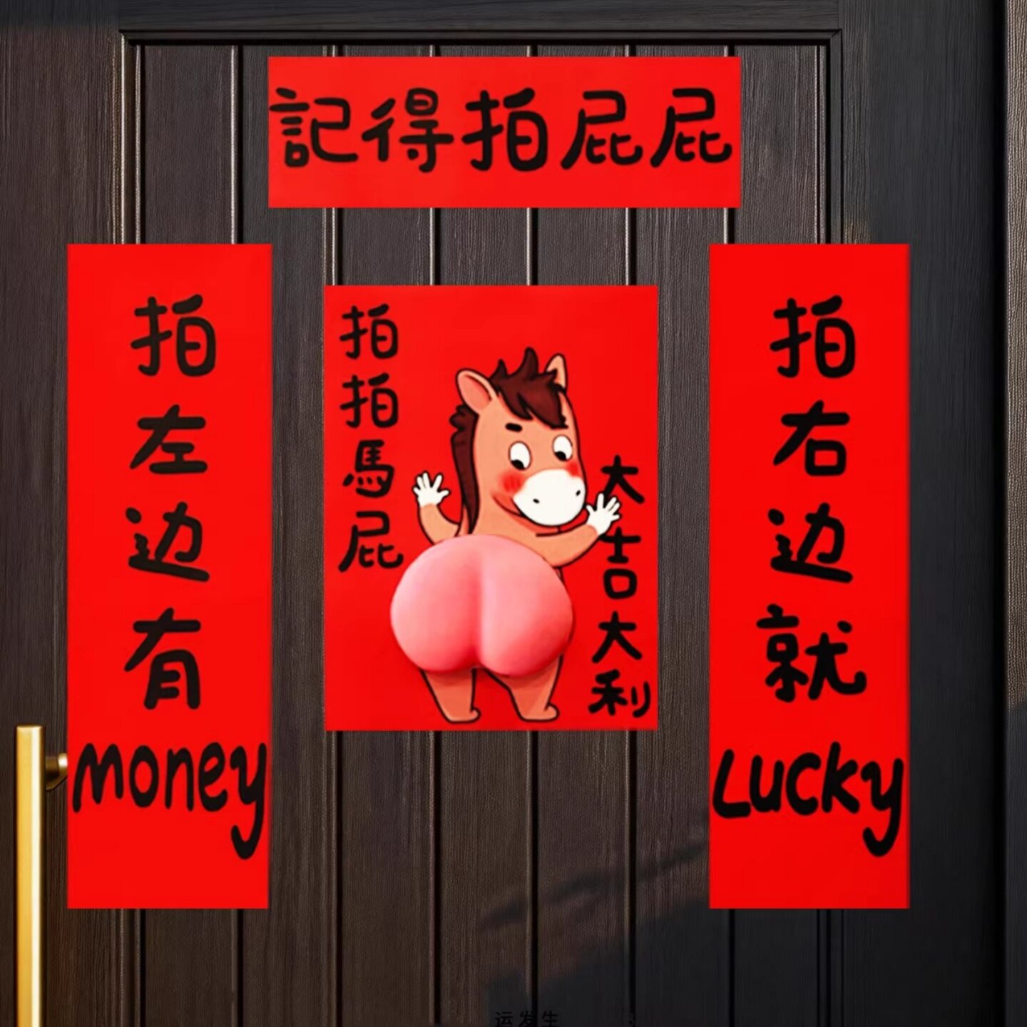 📚 2026马年拍拍马屁春联对联搞笑立体马屁新年过年入户福字门贴装饰