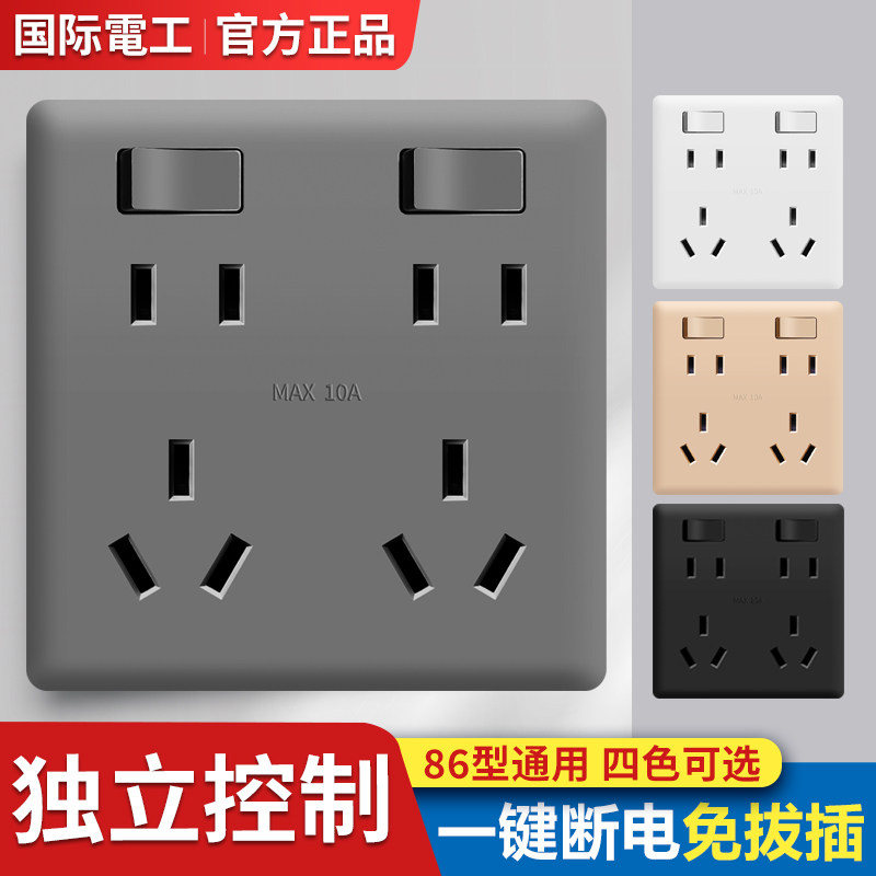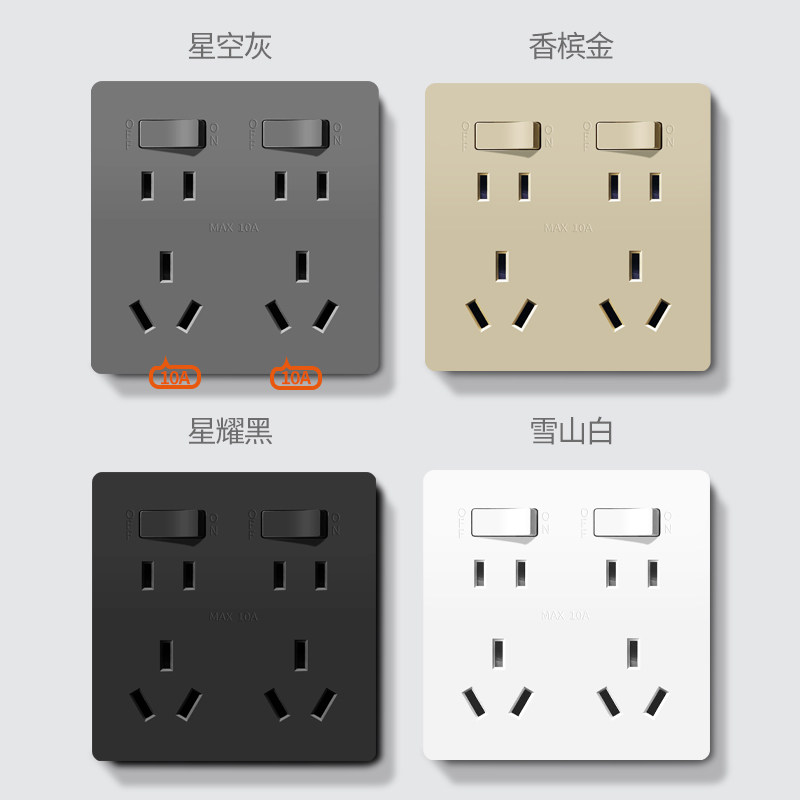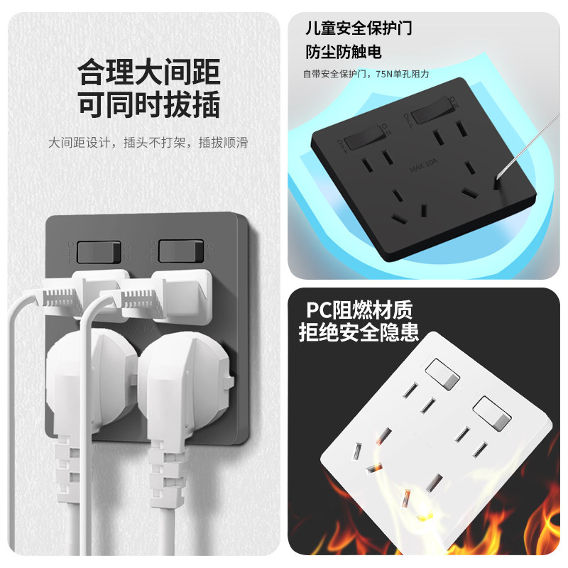 📚 86型二开十孔插座面板暗装双开10孔带开关两开六孔厨房专用双五孔