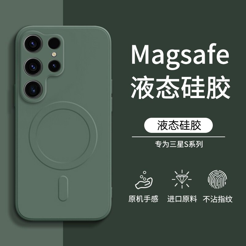 📚 适用三星s24手机壳新款磁吸充电S23Ultra液态硅胶s25+全包s21fe防摔S22+镜头保护5g女纯色高级感Galaxy男软壳
