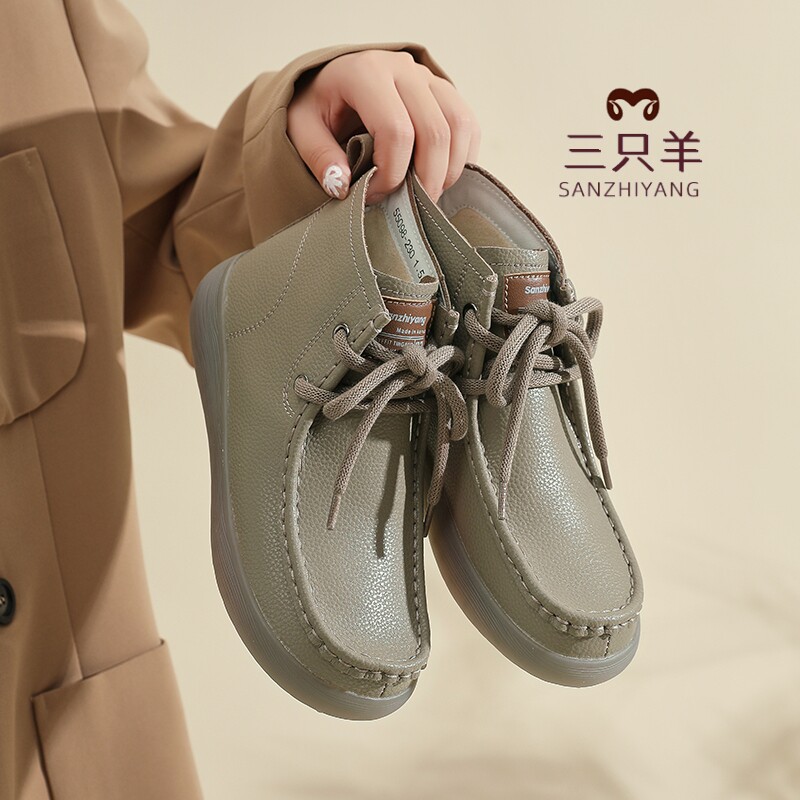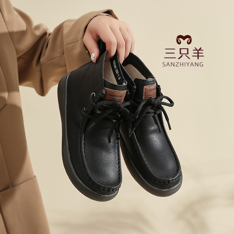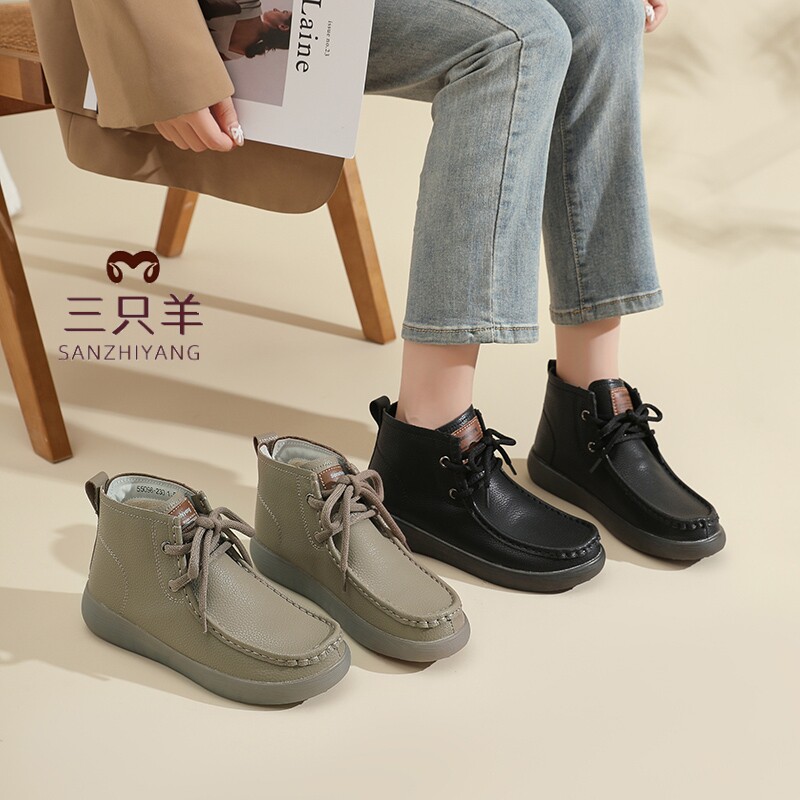 📚 三只羊马丁靴女2025新款平底单靴休闲复古牛筋底软底妈妈鞋女短靴