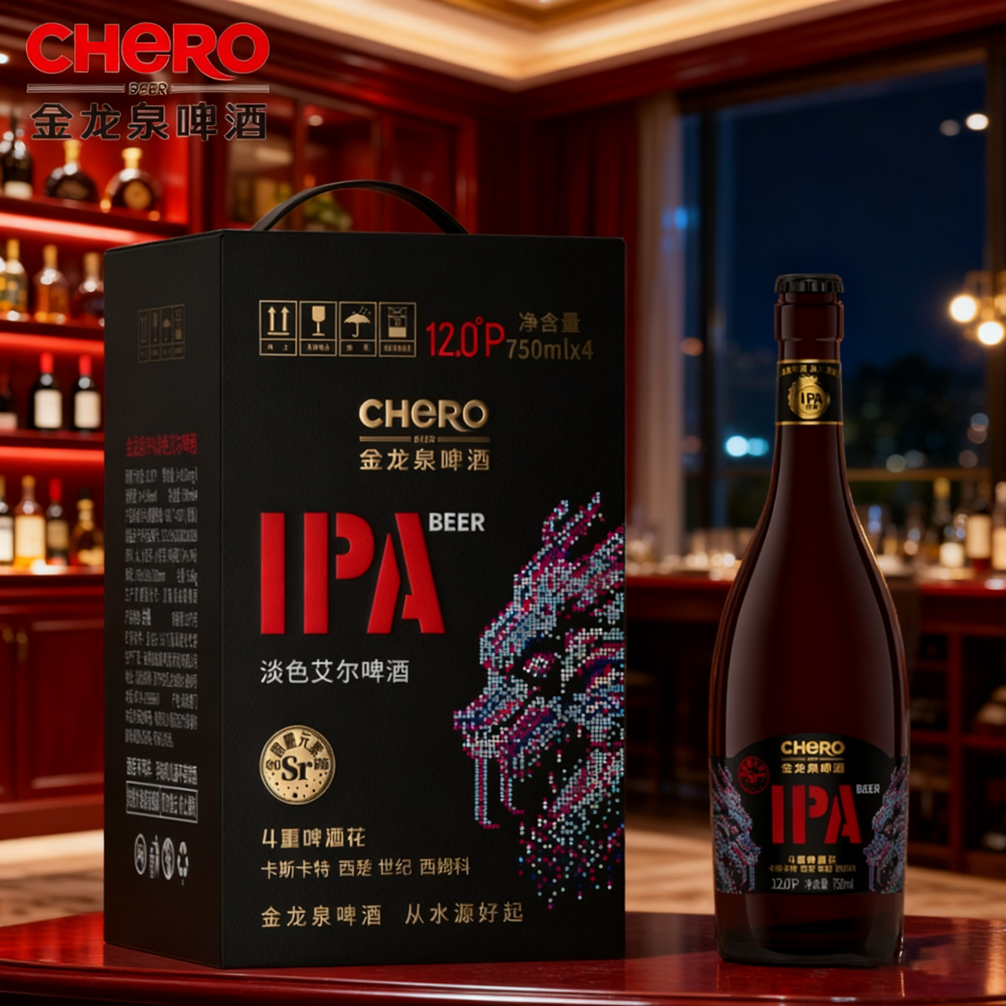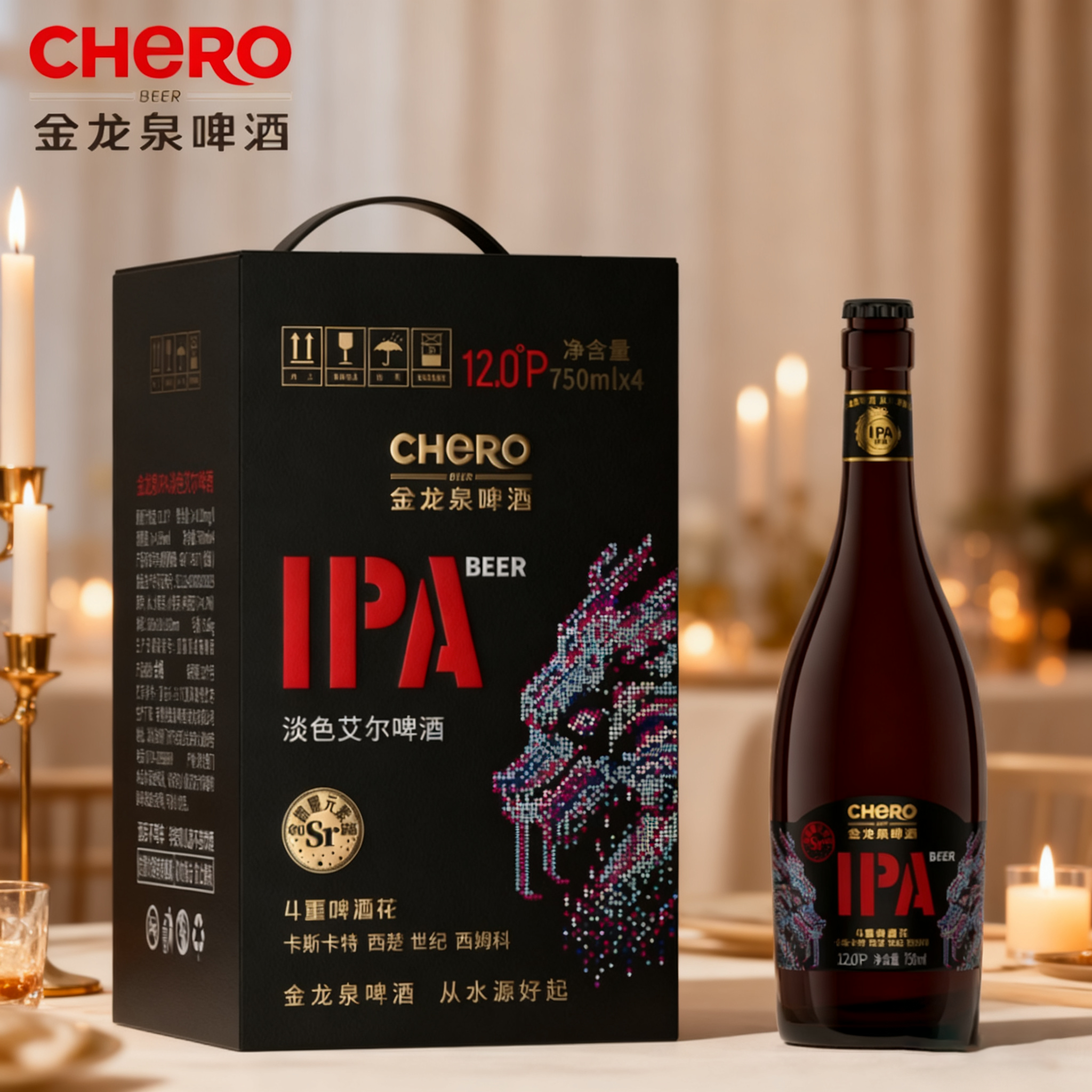 📚 金龙泉啤酒轻奢IPA淡色艾尔啤酒750ml*4瓶礼盒装精酿啤酒12.0°P