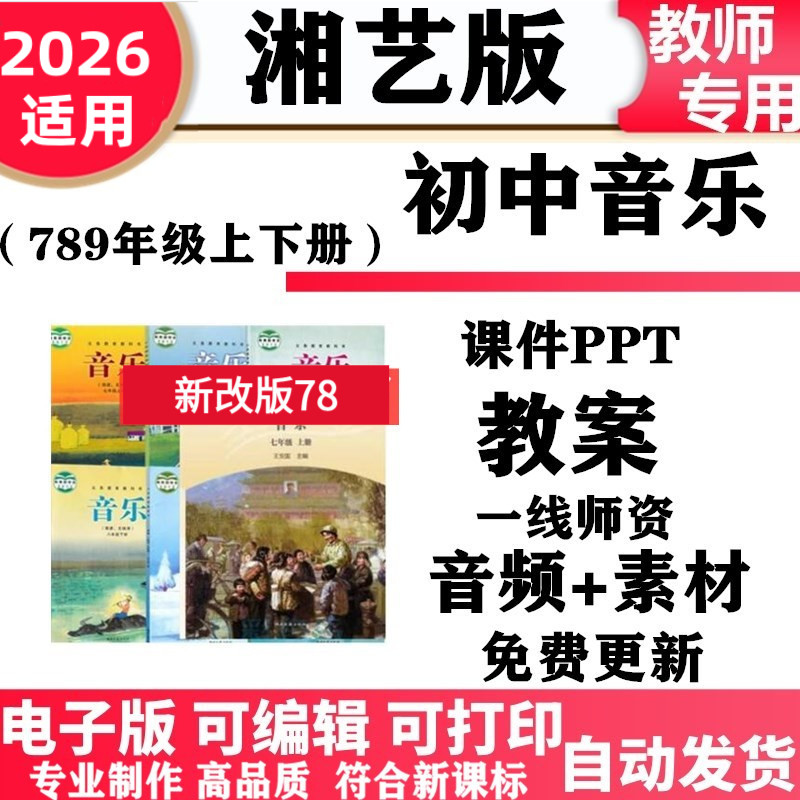 📚 2026新改版 湘教湘艺版版初中音乐七年级八九年级上下册教案课件PPT音频MP3歌曲初一二三电子版