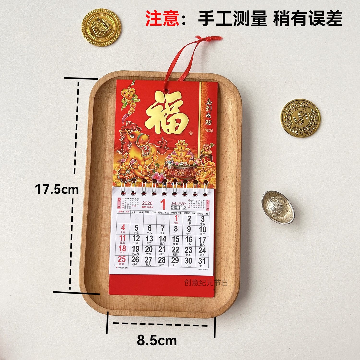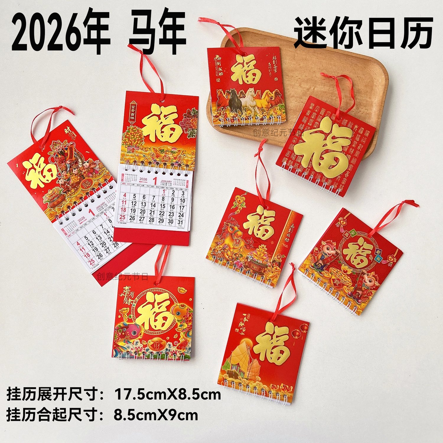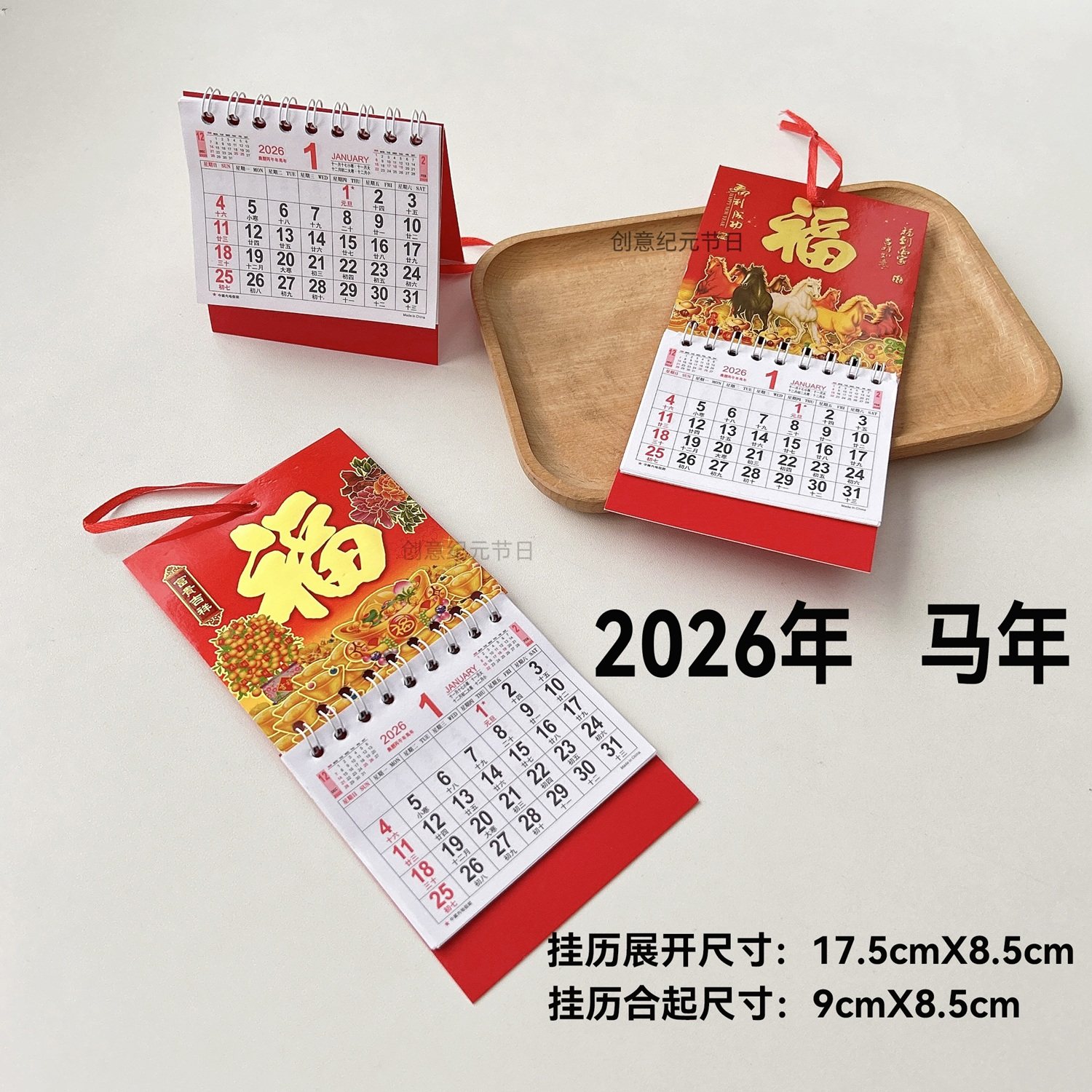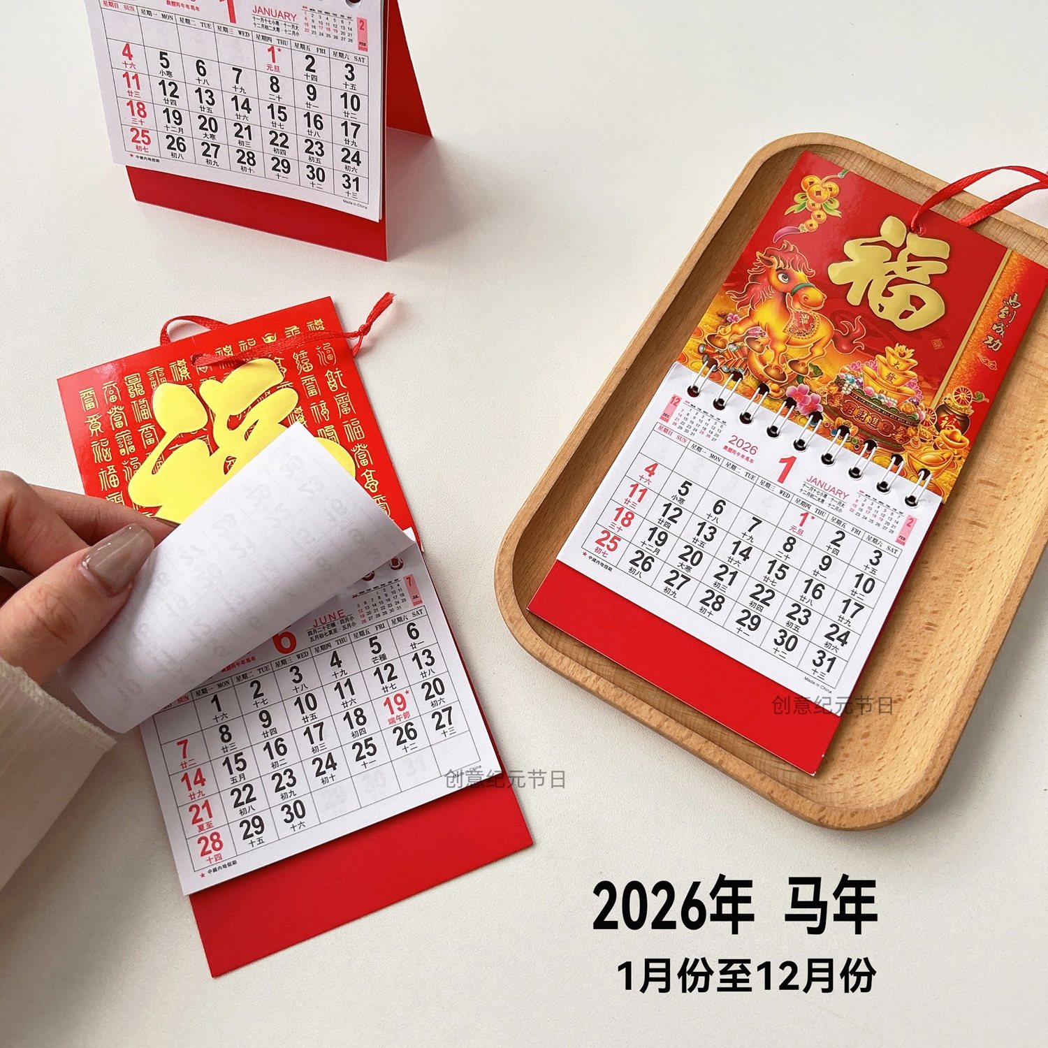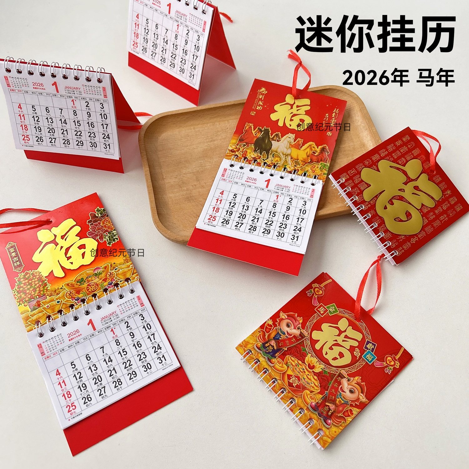 📚 2026年迷你日历马年香港假期版挂历金箔福字日历车载装饰桌面挂历