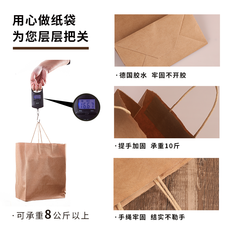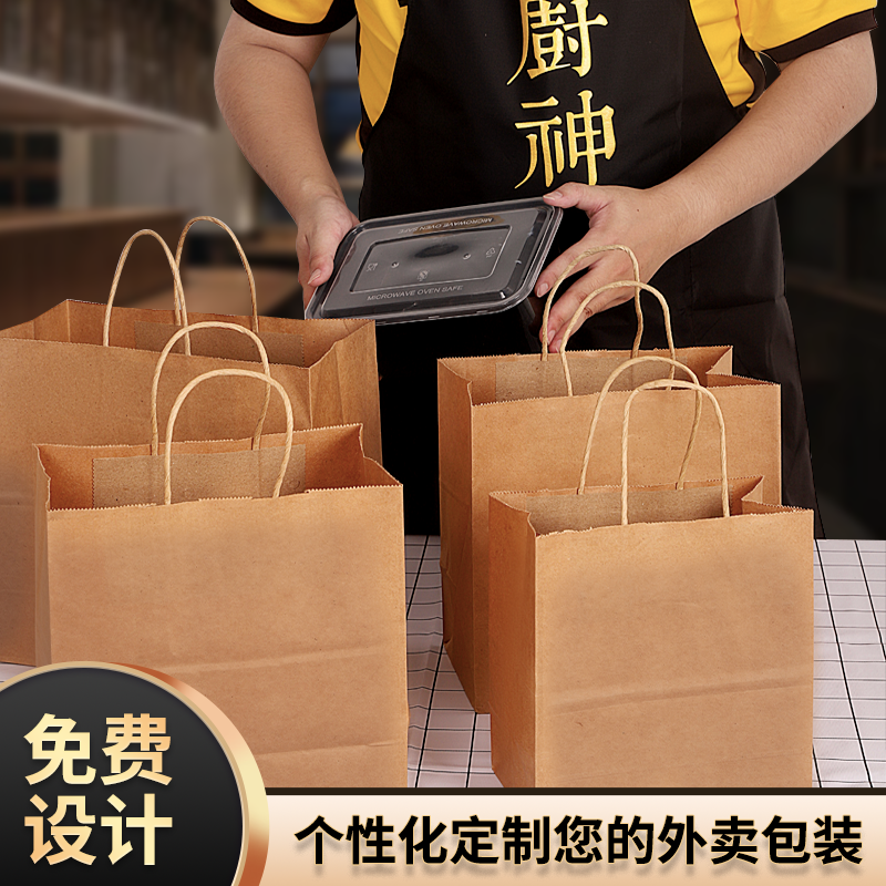 📚 牛皮纸袋手提袋外卖打包袋餐饮商用定制礼品食品烘焙加厚大号袋子