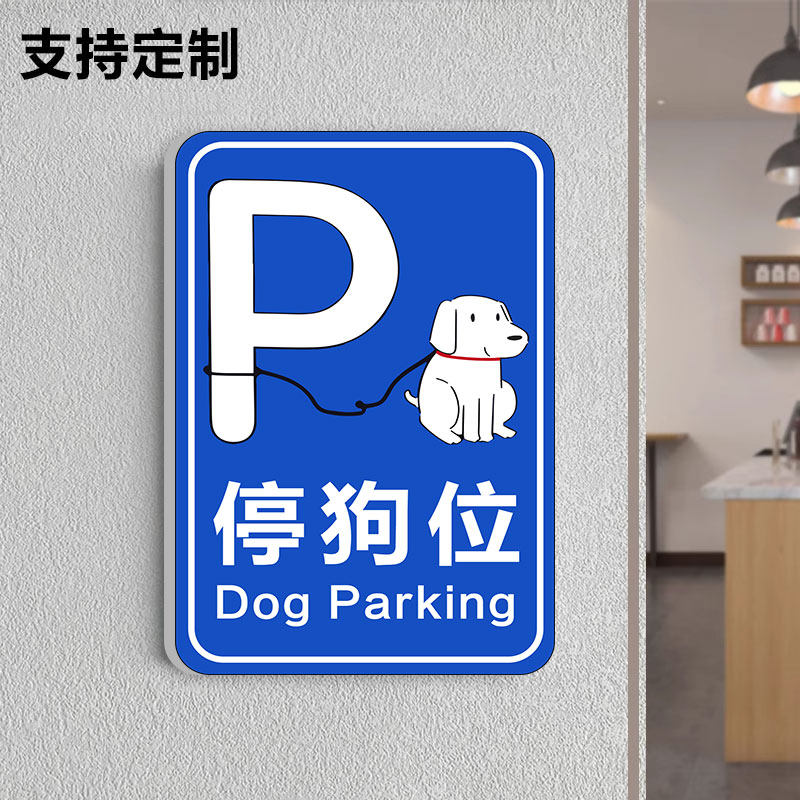 📚 不锈钢停狗位牌泊狗位温馨提示牌网红咖啡店餐厅金属标牌宠物安置禁止携带宠物入内标识小狗存放处栓狗标识