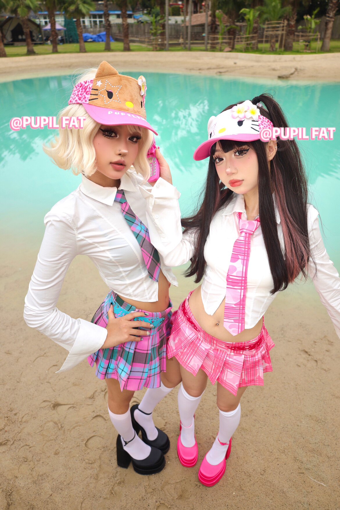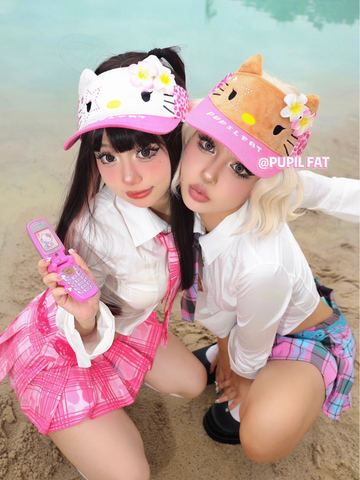 📚 PUPIL FAT原创自制恶搞夏威夷黑皮Kitty毛绒空顶帽夏日甜酷