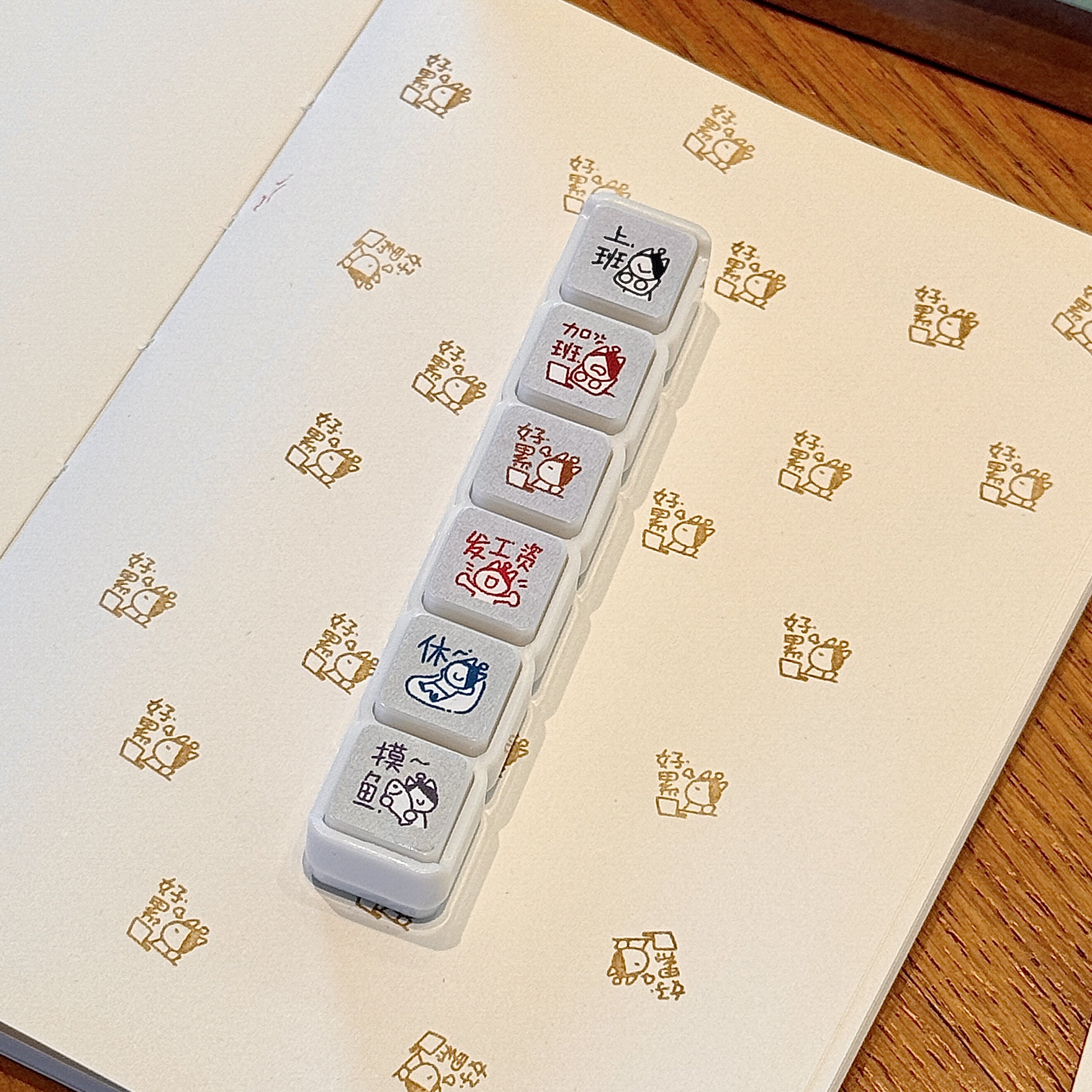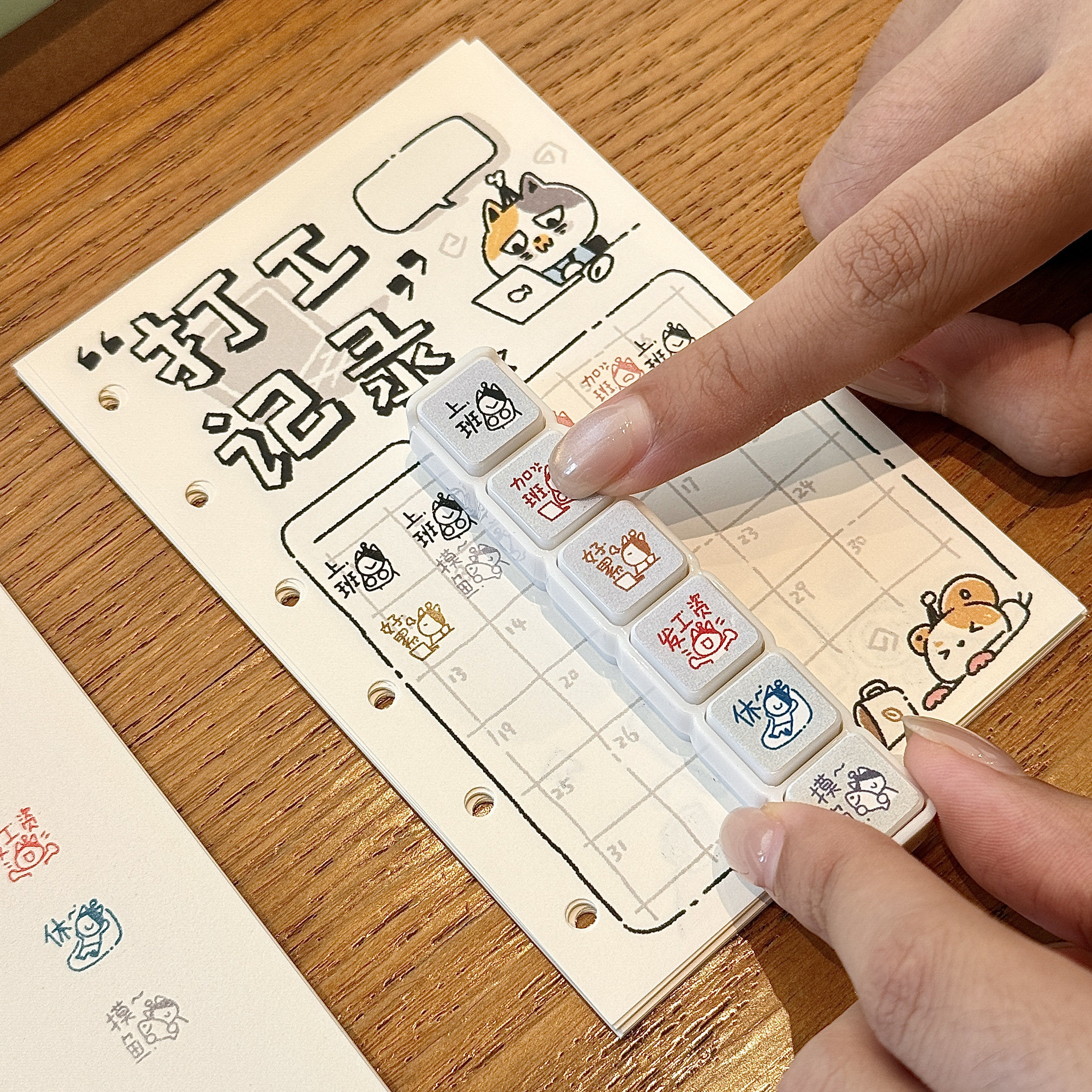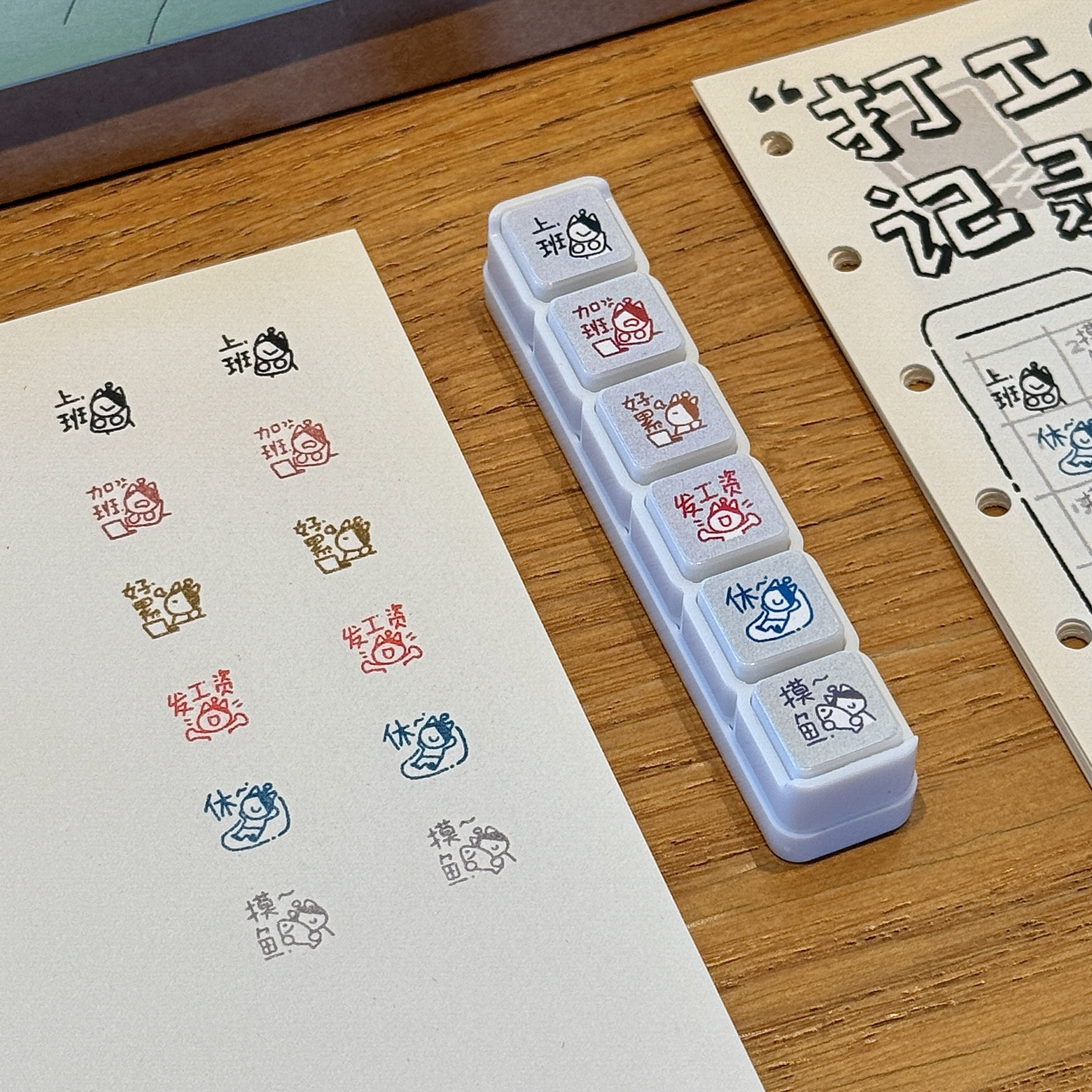 📚 猫咪打工人记录六联光敏印章按压式创意手帐diy打卡装饰素材便携