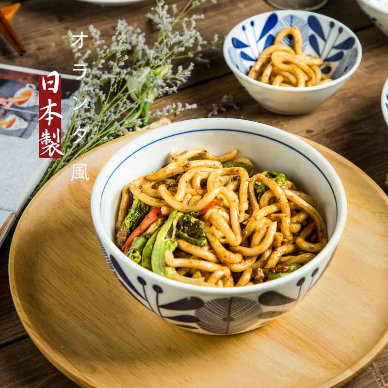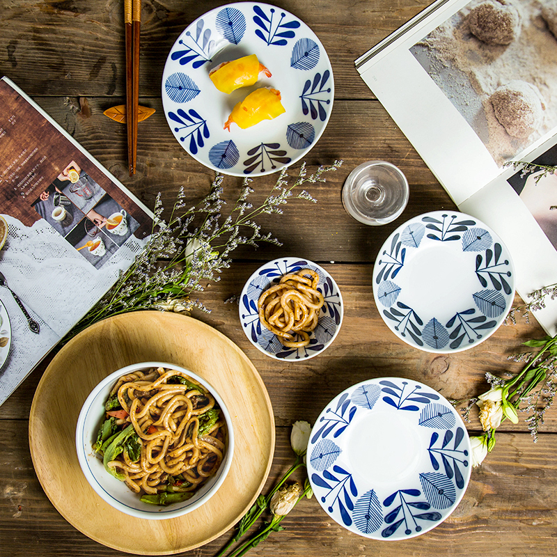 📚 美浓烧陶瓷餐具蓝枫林小清新典雅轻量瓷饭碗汤面碗大盘子