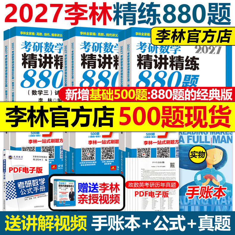 📚 官方指定】李林2027考研数学精讲精练880题基础500题27数学一数二数三2026李林880题高频考点透析108题练习题660题张宇6套卷4卷6+4