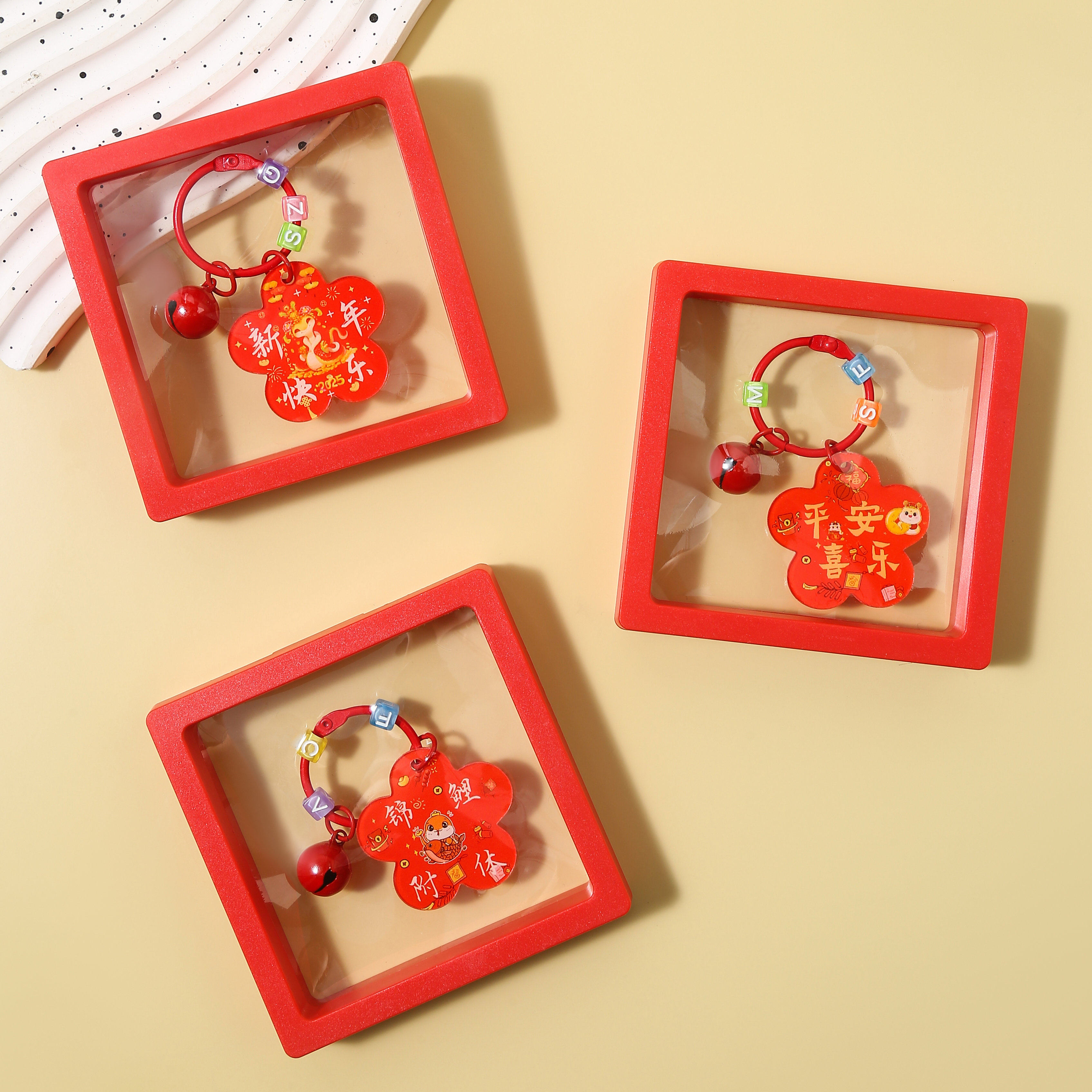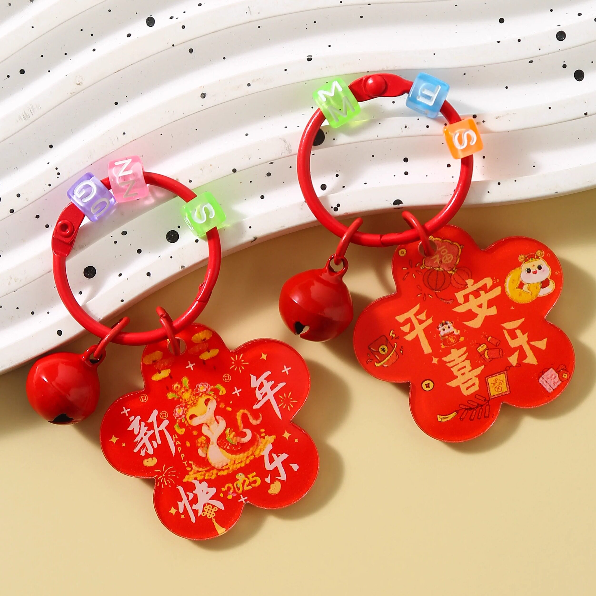 📚 梅花型钥匙扣铃铛招财进宝挂饰新年生日礼物锦鲤附体背包挂件