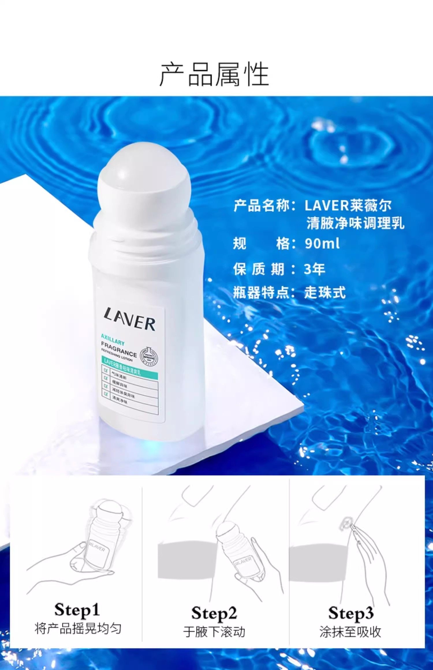 📚 LAVER莱薇尔祛味调理乳走珠止汗露腋下去狐味净汗臭除体臭正品