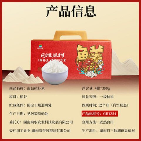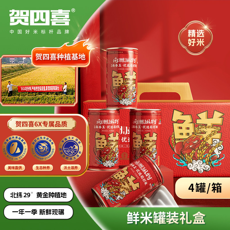 📚 鲜米罐装300g*4南县稻虾米长粒鲜香软糯送礼大气简约
