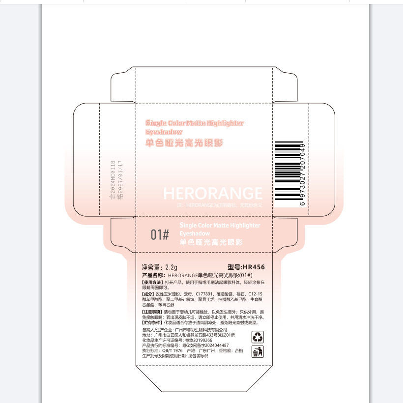 📚 HERORANGE单色哑光高光眼影粉质细腻持久显色自然提亮修容一体盘