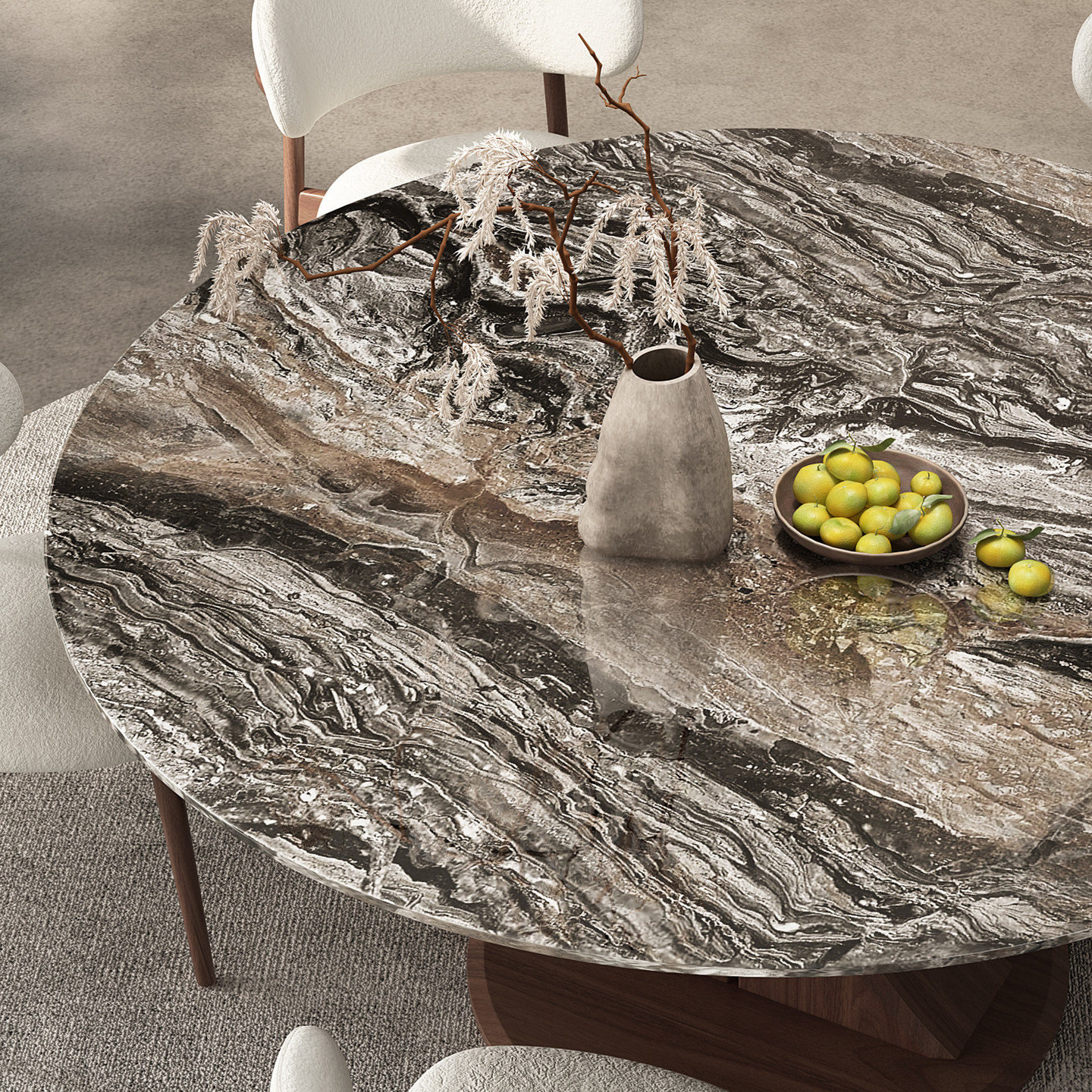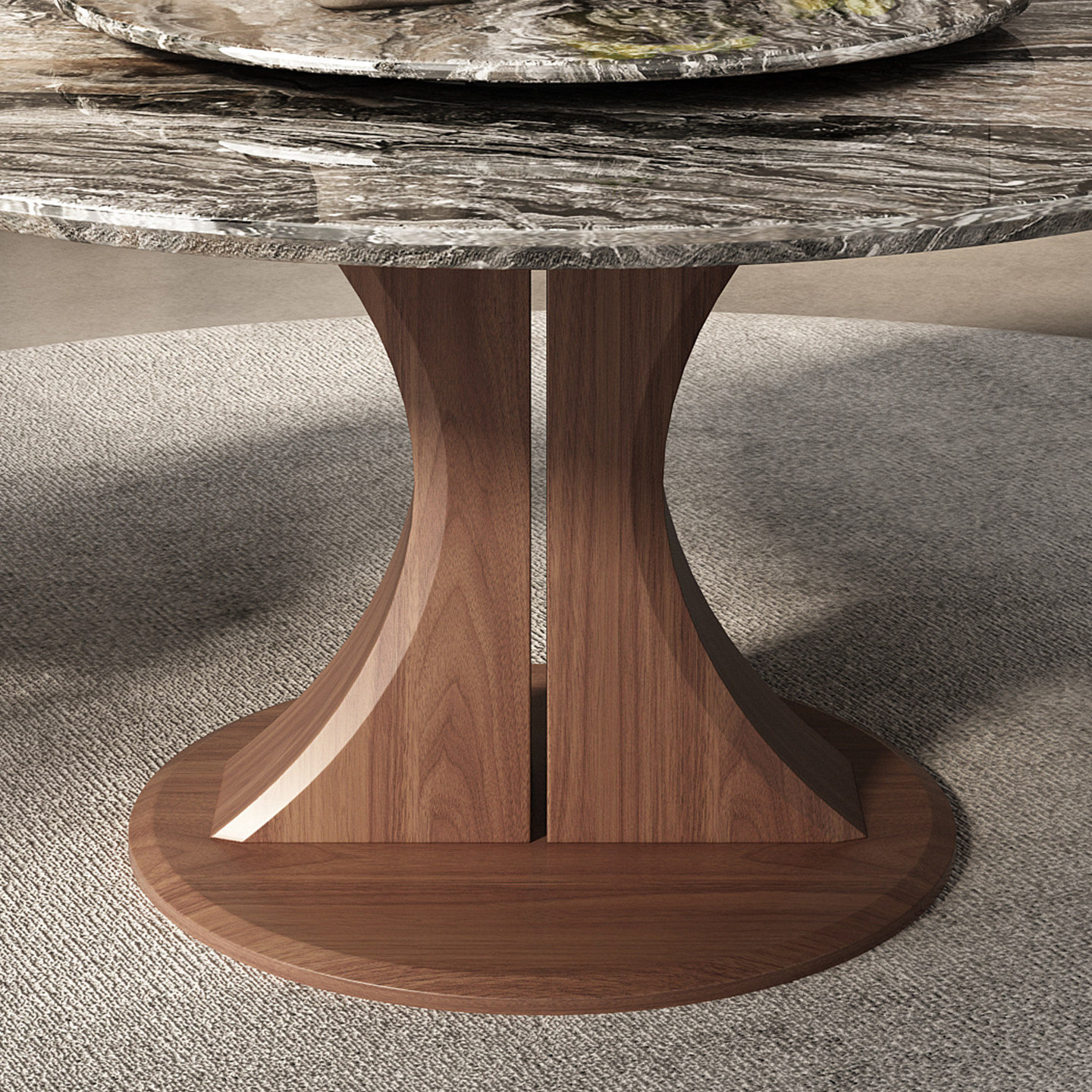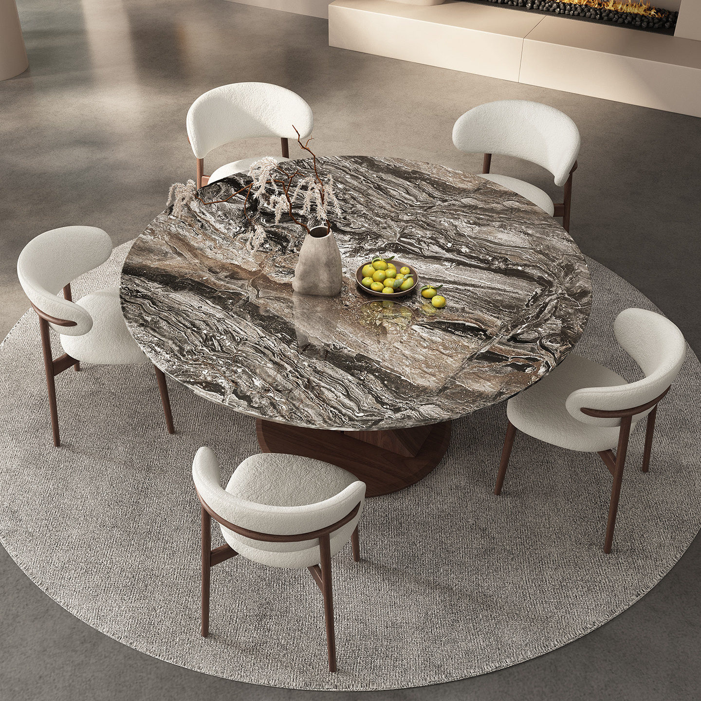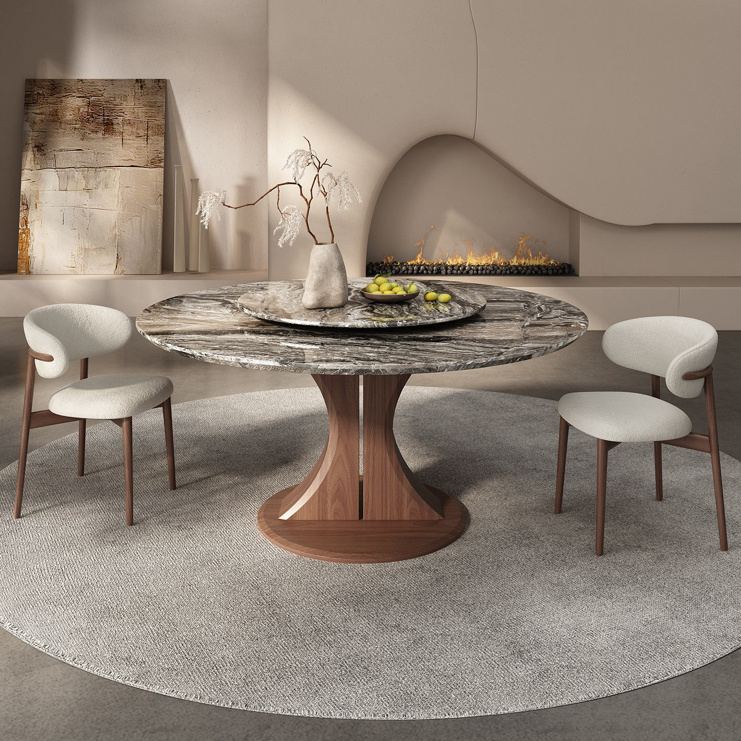 📚 天然奢石实木餐桌带转盘新款北欧家用轻奢威尼斯棕白蜡木圆形饭桌