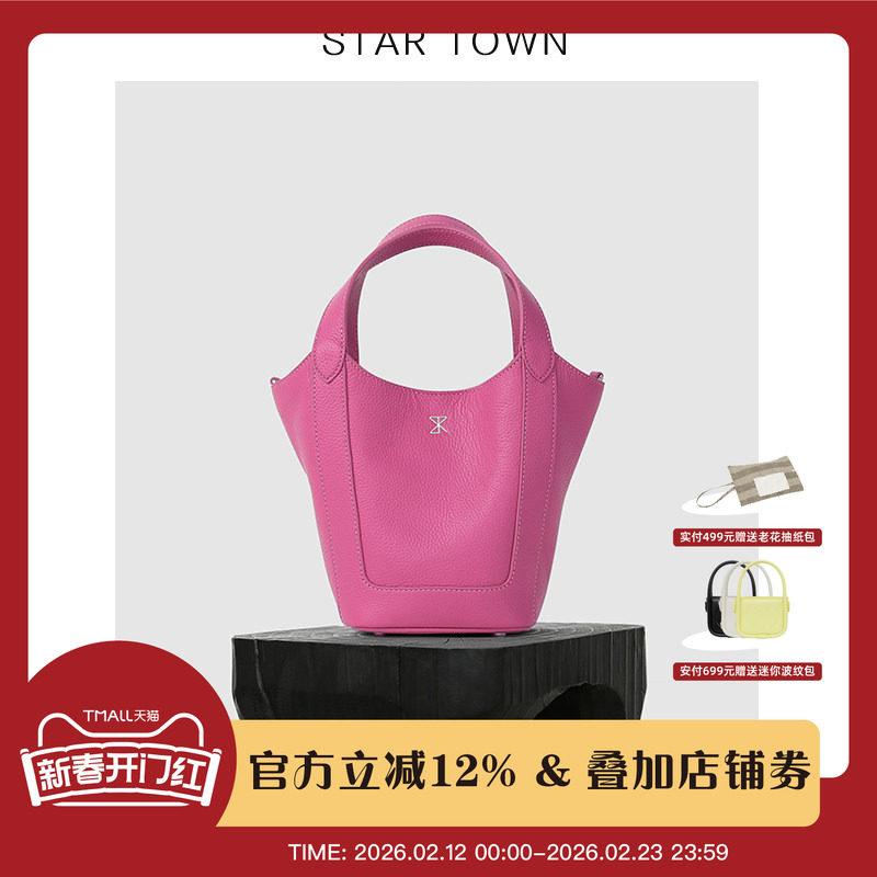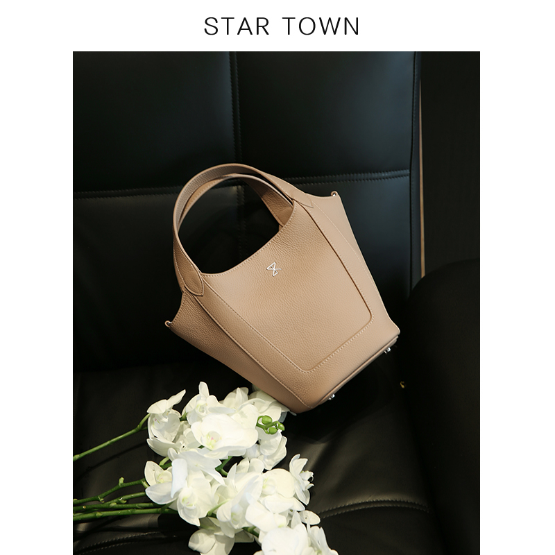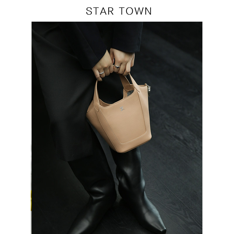 📚 STARTOWN头层牛皮水桶包女2024春夏新款菜篮子包百搭斜挎手提包包