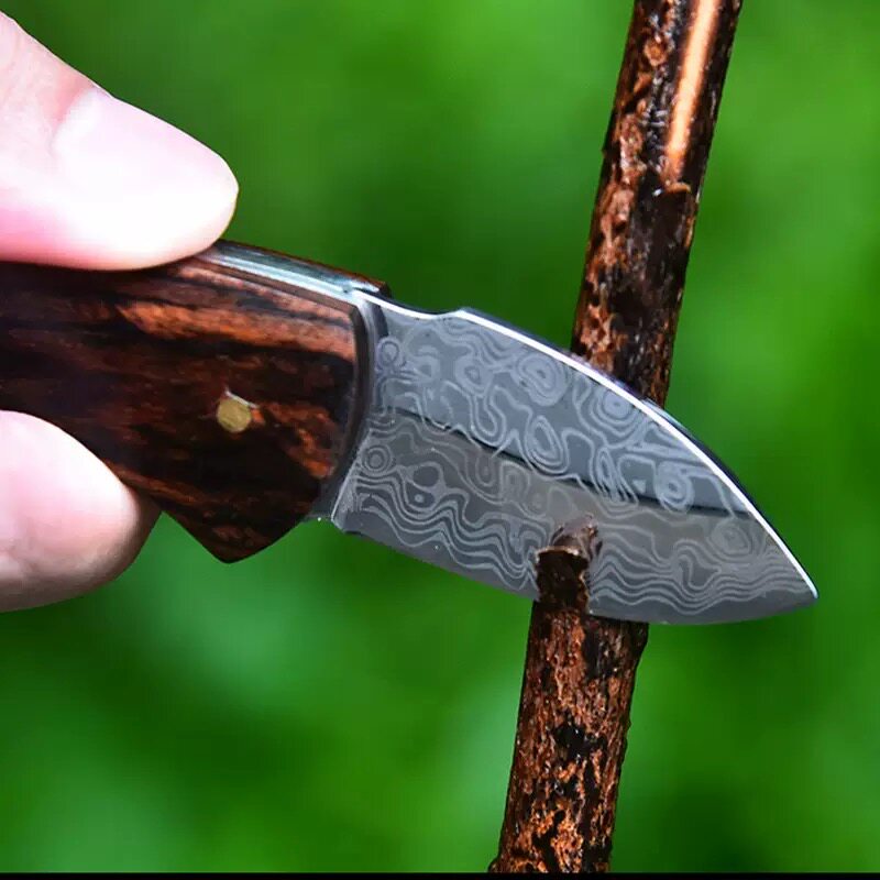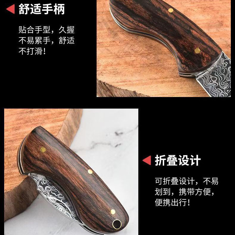 📚 大马士革纹折叠水果刀迷你户外随身钥匙扣小刀高硬度锋利口袋小刀