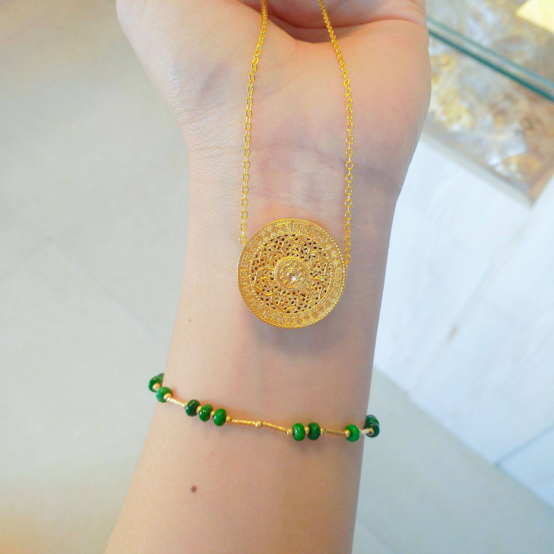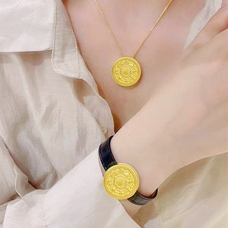📚 包金黄金包银女黄金色八宝罗盘手链手表盘项链情侣手饰送女友礼物