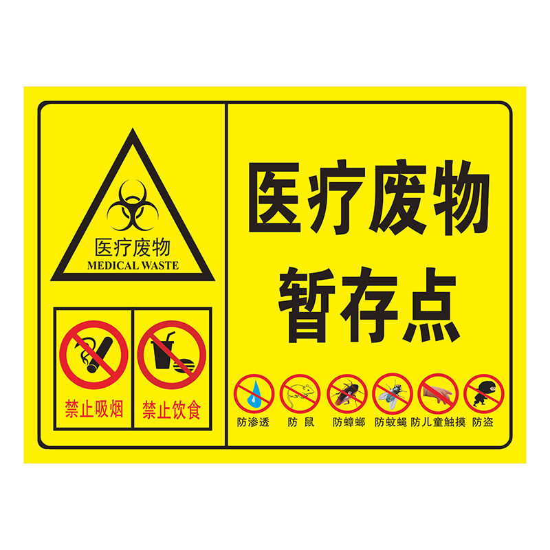 📚 医疗废物暂存点处警示警告防鼠防蝇防蟑螂非工作人员禁止入内警示标识提示牌医疗垃圾废物标志贴安全标识牌